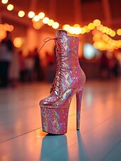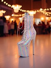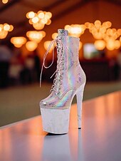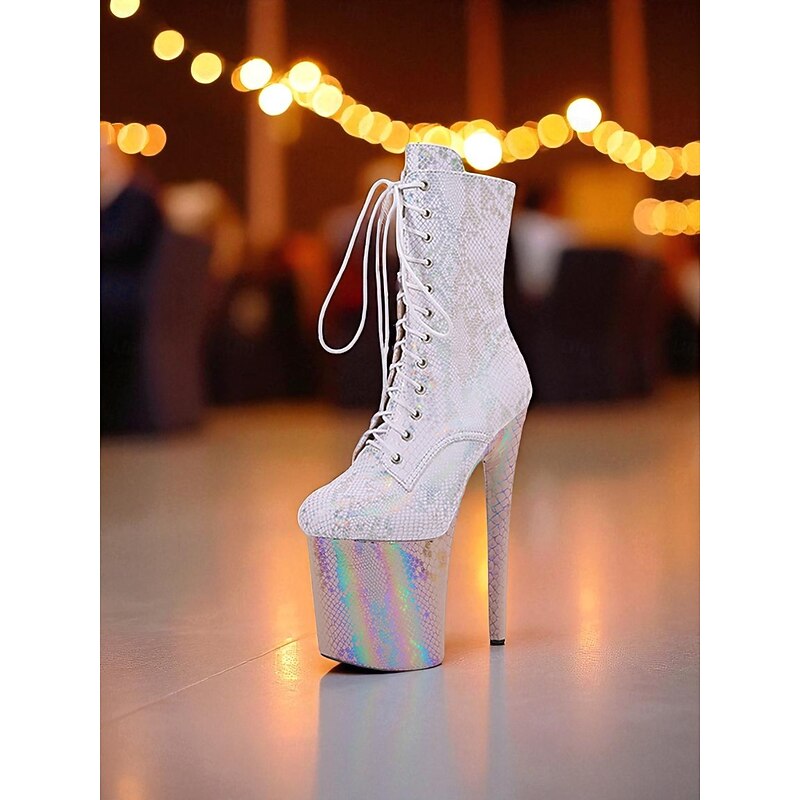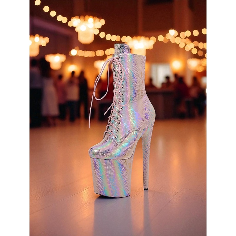 Women's Iridescent Snakeskin Platform Lace-Up Boots - Sexy High Heel Stiletto Party Shoes for Nightlife and Clubwear 1