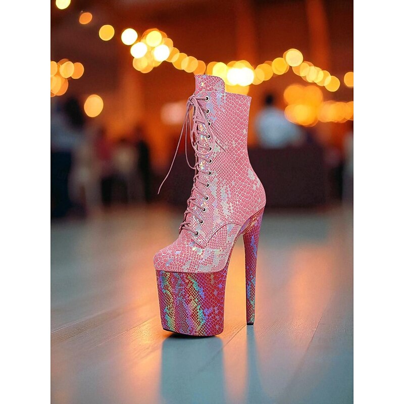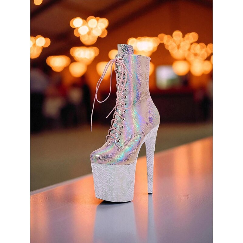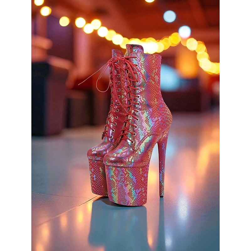 Women's Iridescent Snakeskin Platform Lace-Up Boots - Sexy High Heel Stiletto Party Shoes for Nightlife and Clubwear 24