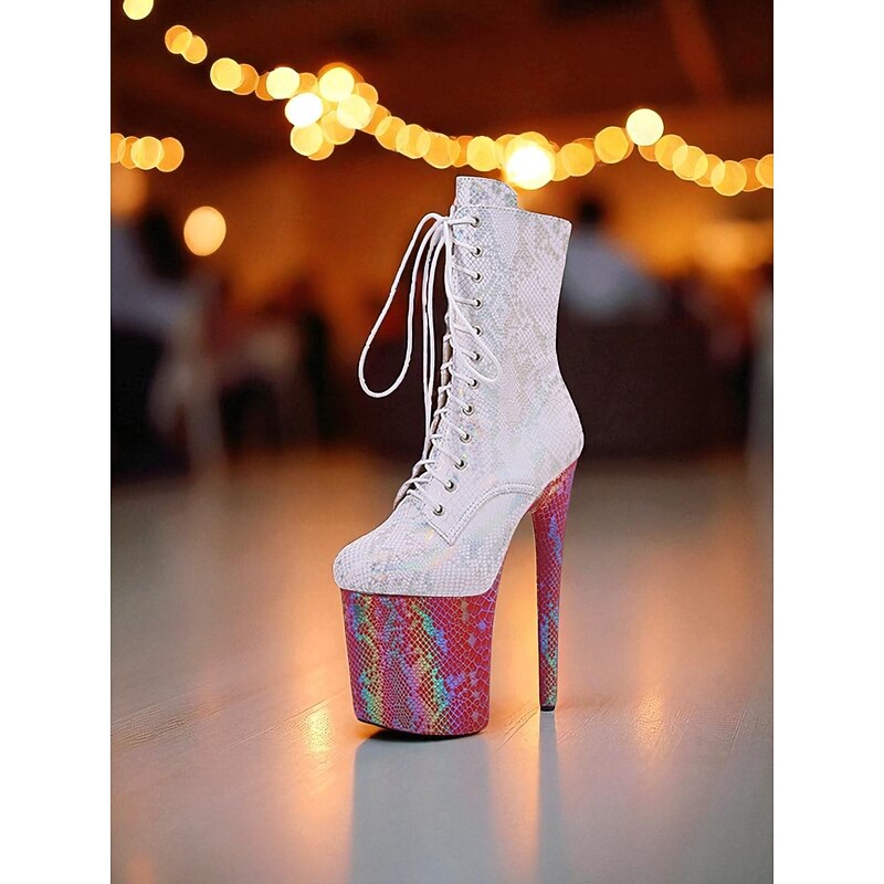 Women's Iridescent Snakeskin Platform Lace-Up Boots - Sexy High Heel Stiletto Party Shoes for Nightlife and Clubwear 20