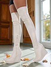 More information about Women's Black Faux Leather Over the Knee Wedge Heel Boots - Sexy Thigh High Platform Shoes for Nightlife Party and Clubwear