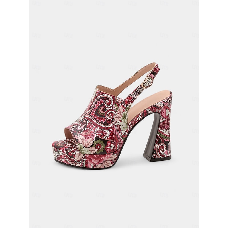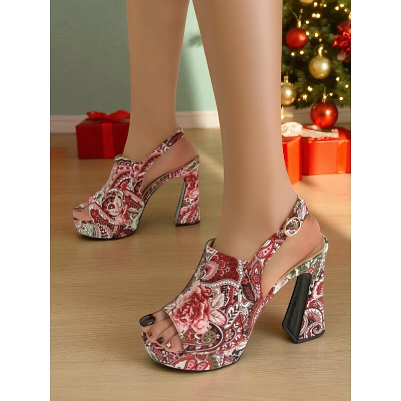 Women's Red Tartan Platform Heeled Sandals - Peep Toe Chunky High Heels for Nightlife and Christmas Holiday Parties 6