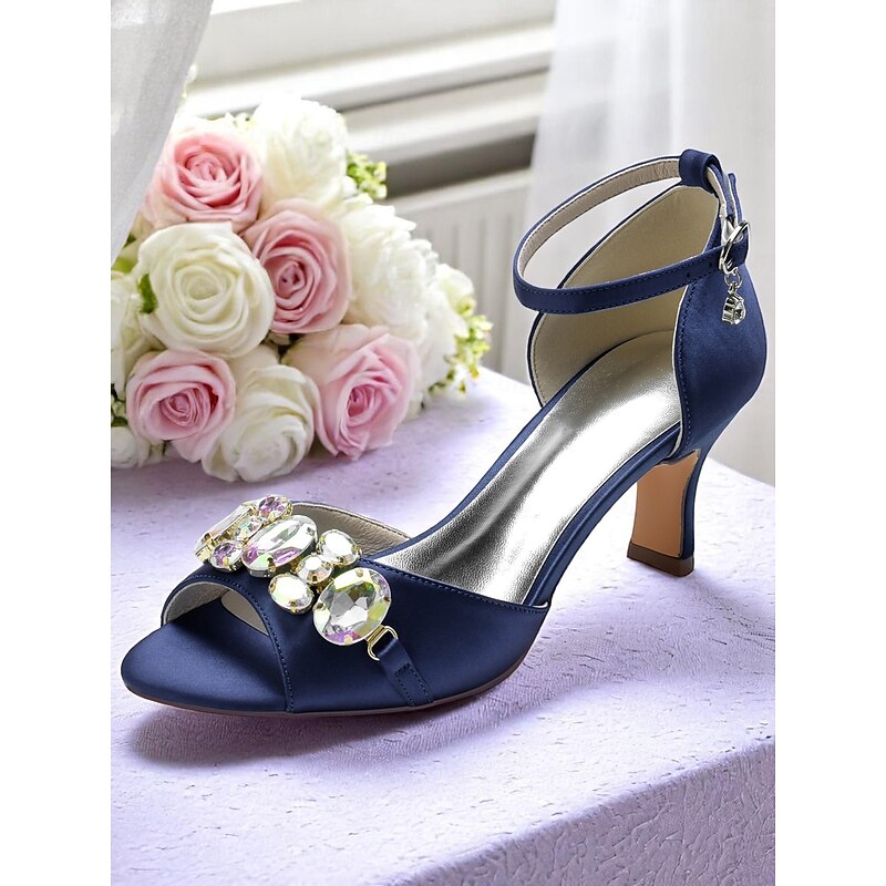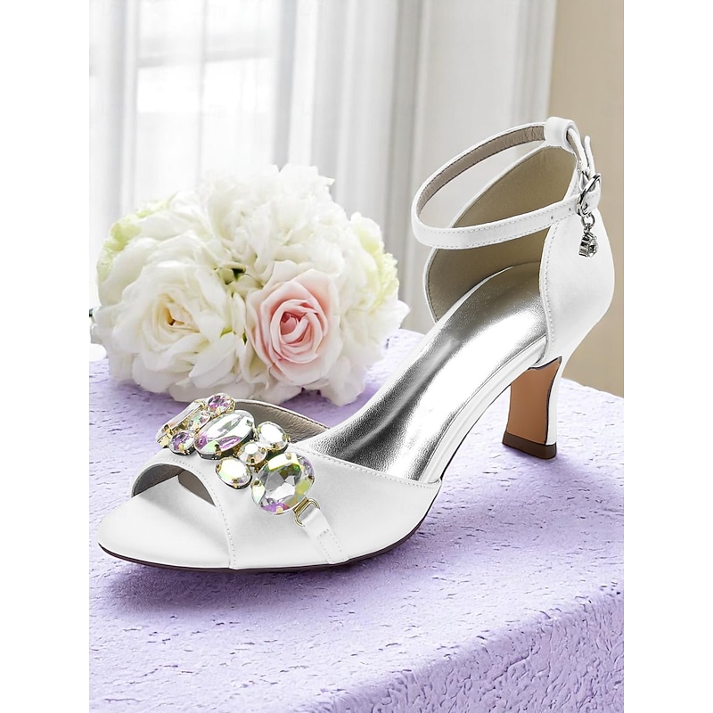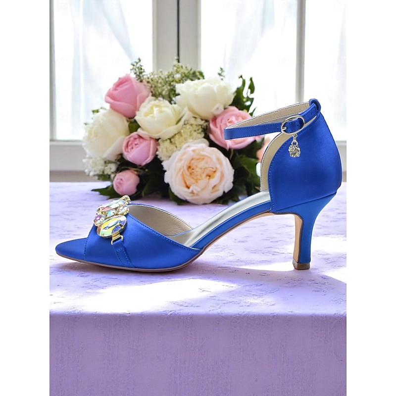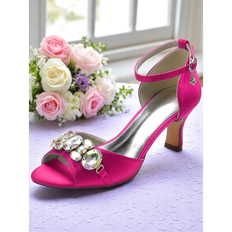 Why Choose Women's Black Satin Open Toe Heels with Ankle Strap and Crystal Gemstone Embellishment- Elegant Mid Heel Sandals for Cocktail Party & Evening Wedding Reception and Formal Events?