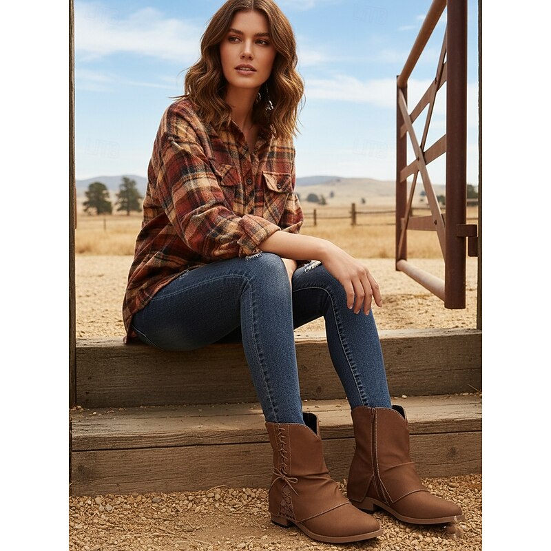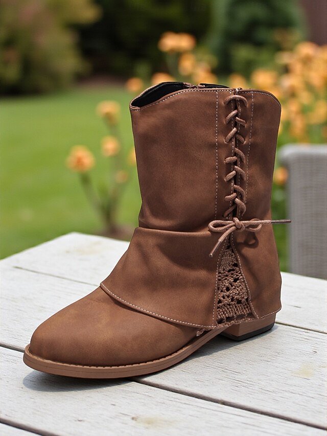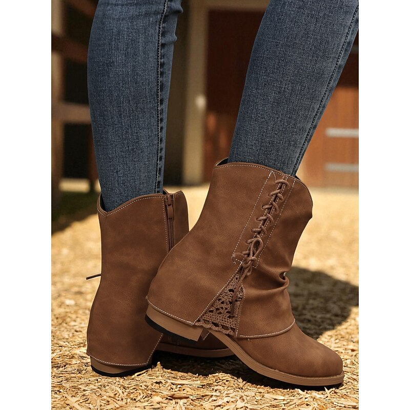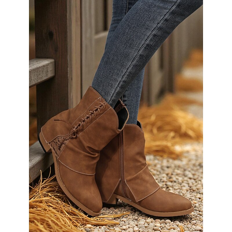This Women's Dark Brown Faux Leather Ankle Boots with Side Zipper and Lace Detail – Casual Vintage Low Heel Boots for Daily Wear, Travel and Outdoor Outfits combines elegant design with practical functionality. Every detail has been carefully considered to ensure you get the best possible experience. The high quality construction means this product will serve you well for years to come.