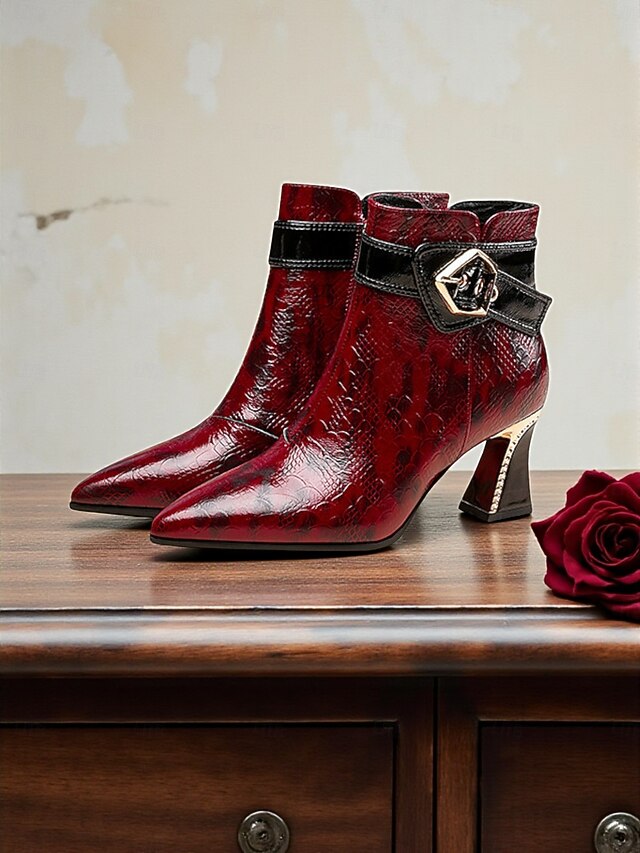 This Women's Genuine Leather Red Ankle Boots with Gold Buckle and Heels, Luxury Pointed Toe Dress Booties for Fashionable Evening Party and Urban Dinner Outfits combines elegant design with practical functionality. Every detail has been carefully considered to ensure you get the best possible experience. The high quality construction means this product will serve you well for years to come.