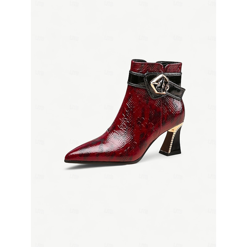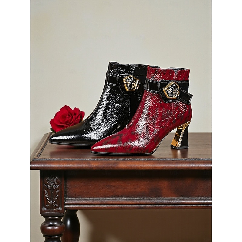 Why Choose Women's Genuine Leather Red Ankle Boots with Gold Buckle and Heels, Luxury Pointed Toe Dress Booties for Fashionable Evening Party and Urban Dinner Outfits?