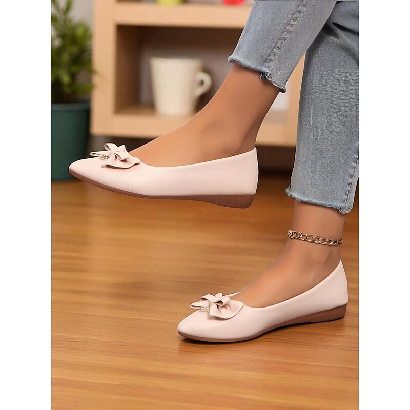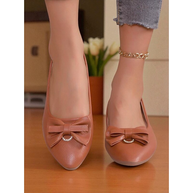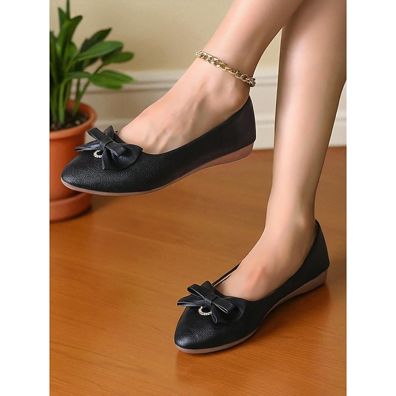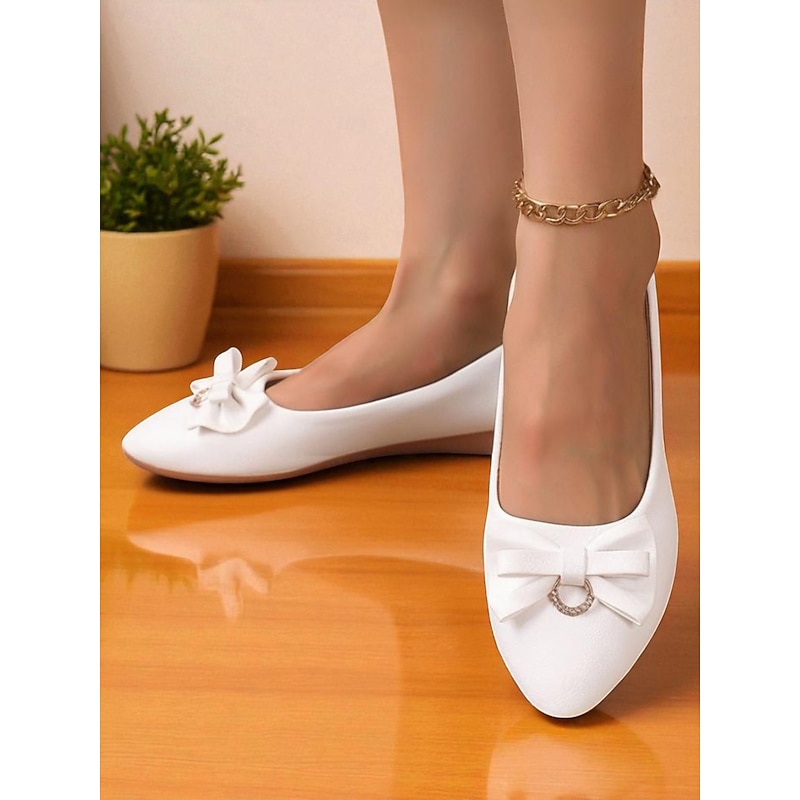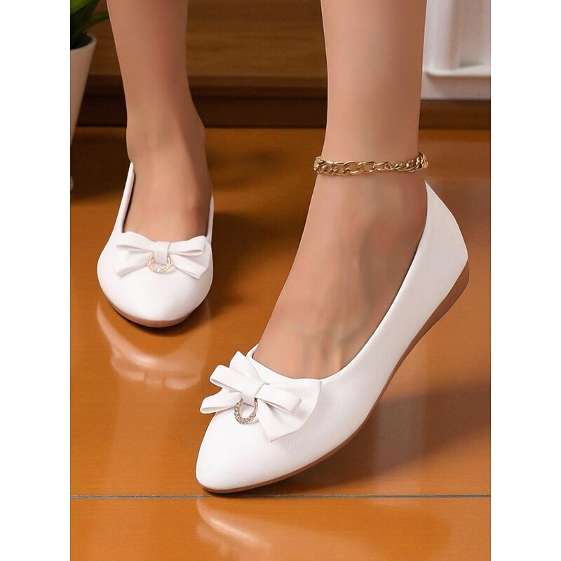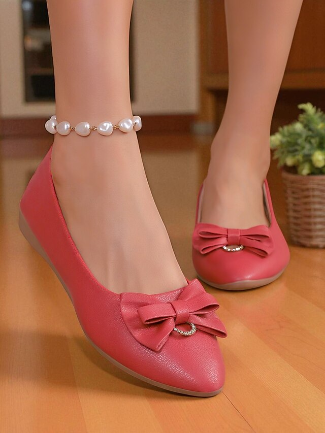 Why Choose Women's Red Faux Leather Flats with Bow and Rhinestone Detail – Cute Round Toe Slip-On Ballet Shoes with Pearl Ankle Strap for Casual Wear, Daily and Office?