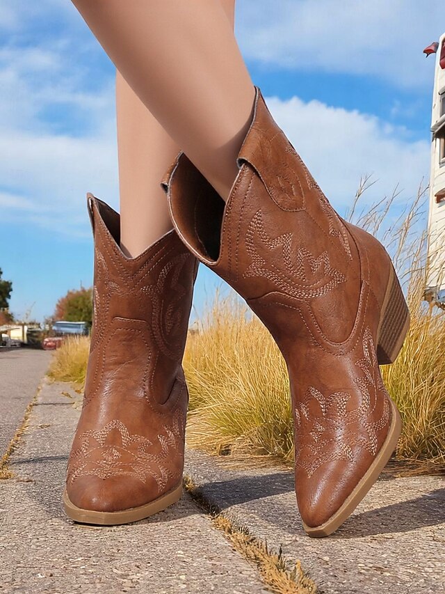 Why Choose Women's Turquoise Faux Leather Western Cowboy Boots Embroidered Pointed Toe Mid-Calf Boots for Country Style Outfits, Rodeos, and Outdoor Events?