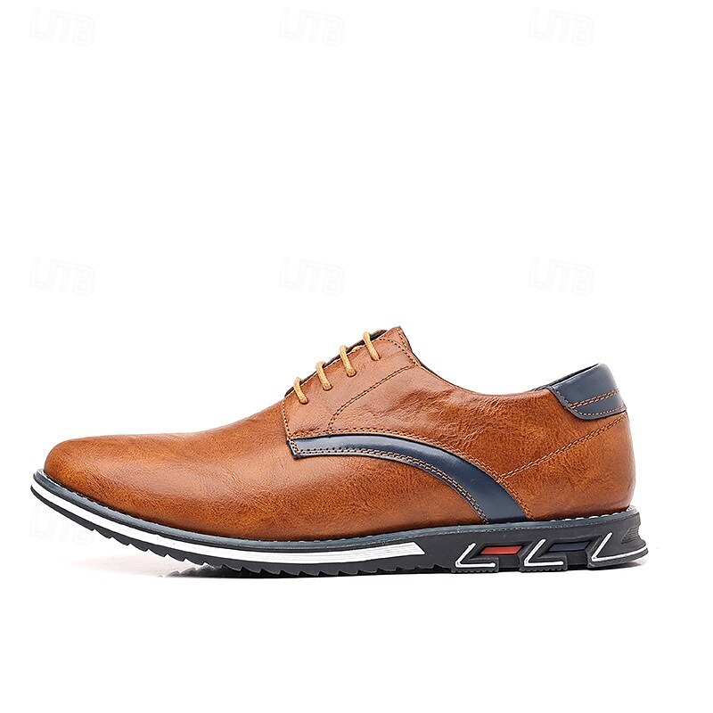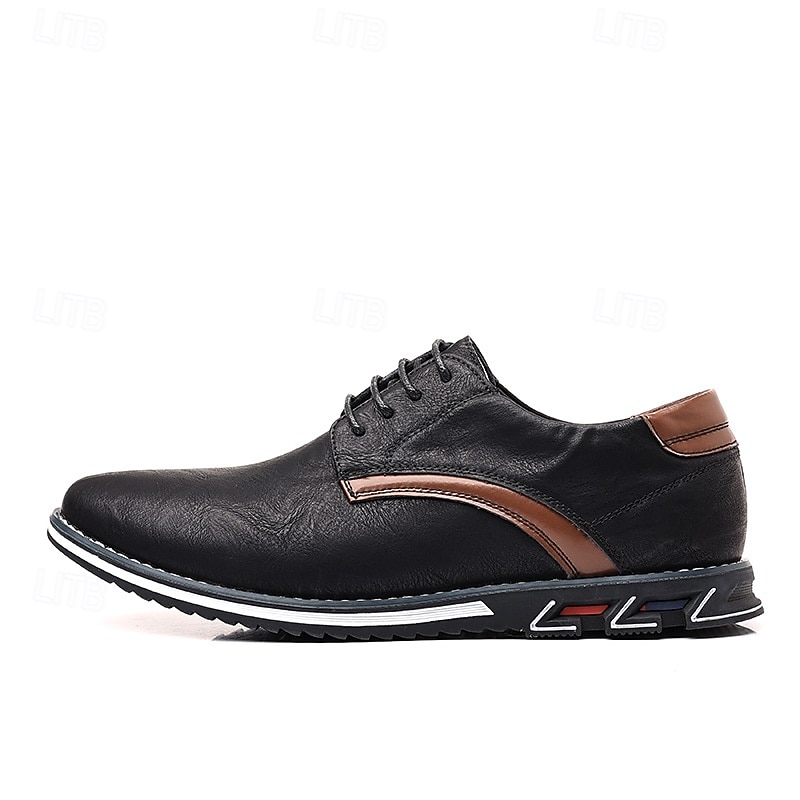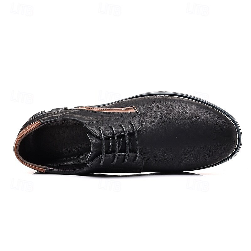 Highlights [Fabric] Crafted from high-quality PU leather, these men's Oxford shoes offer a refined and polished look, perfect for both casual and dressy occasions. The materials ensure durability and ease of maintenance, making these shoes a practical choice for any wardrobe. [Fit] Designed with a classic lace-up closure, these shoes provide a secure and customizable fit. The low-top design enhances mobility, while the cushioned lining guarantees all-day comfort, making them ideal for extended wear. [Design Highlights] Featuring contrast stitching and a sleek round toe, these shoes offer subtle yet stylish detailing. The durable rubber outsole provides excellent grip and slip resistance, ensuring both safety and style. The rich brown and black color options enhance their versatile appeal, allowing for easy pairing with various outfits. [Occasions] These versatile Oxford shoes are perfect for a range of occasions, from casual gatherings to more formal events. Whether you're heading to the office or out for a weekend brunch, these shoes add a touch of class and sophistication to any ensemble. [Size Range] Available in sizes US6 to US14, these shoes accommodate a wide range of foot sizes, ensuring that you find the perfect fit for ultimate comfort and style.