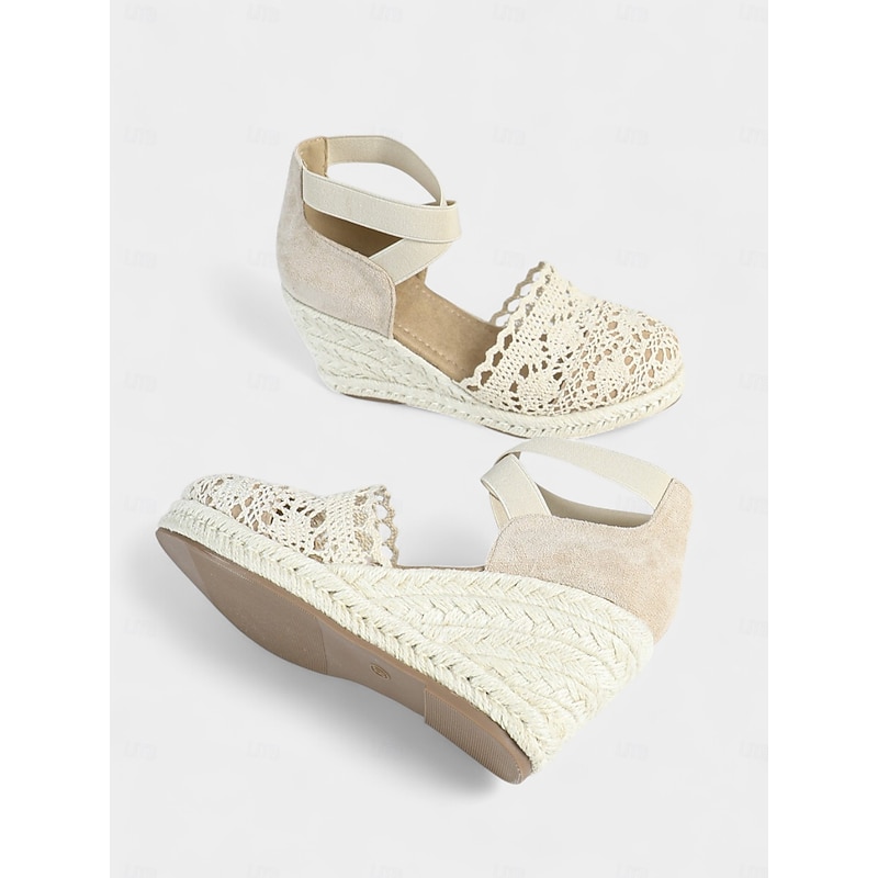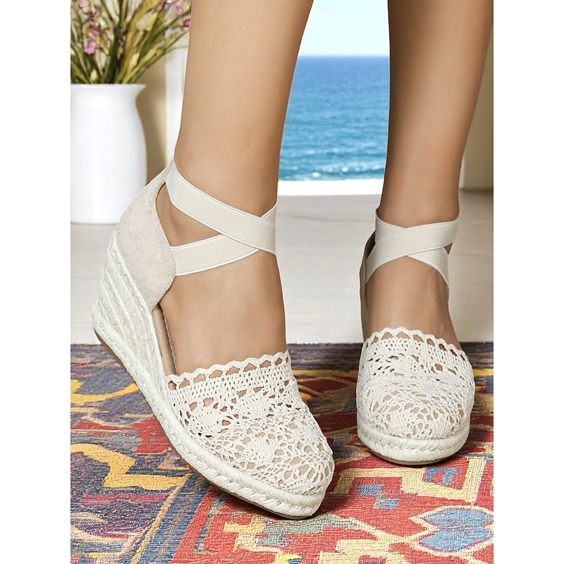 Why Choose Women's Crochet Lace Espadrille Wedge Sandals – Vintage Style Closed Toe Platform Shoes with Ankle Straps, Ideal for Summer Beach Weddings and Garden Parties?