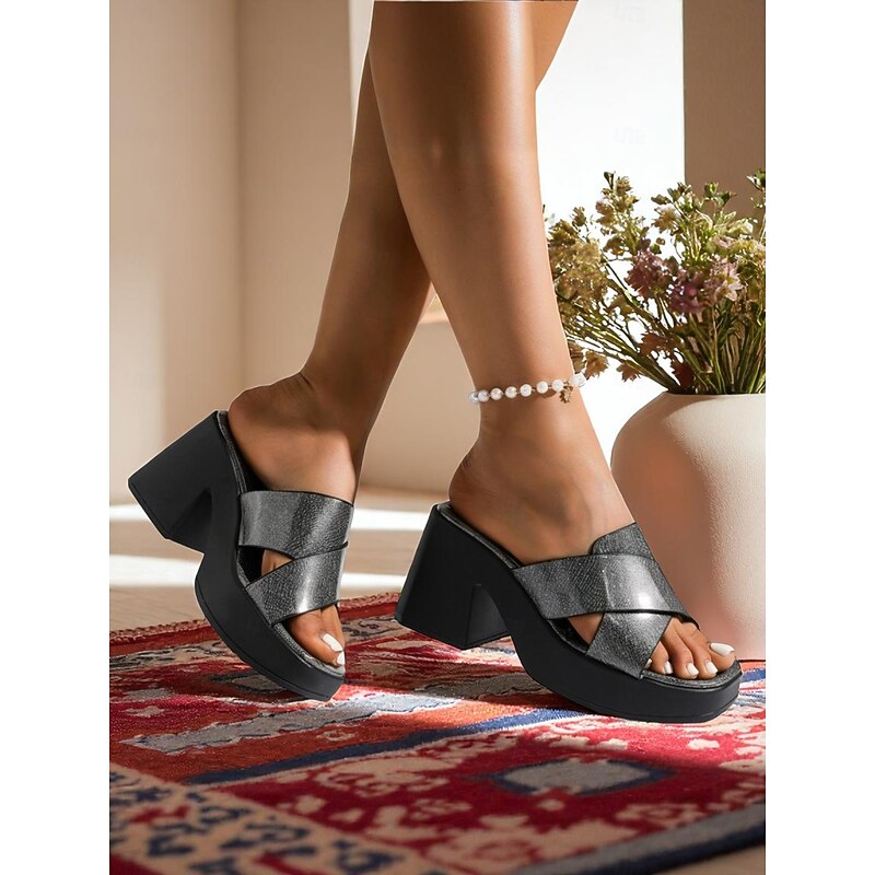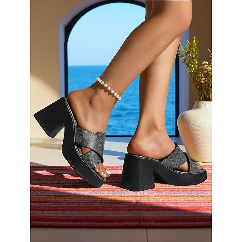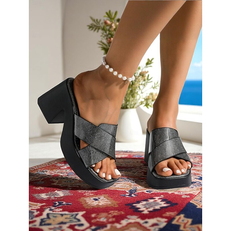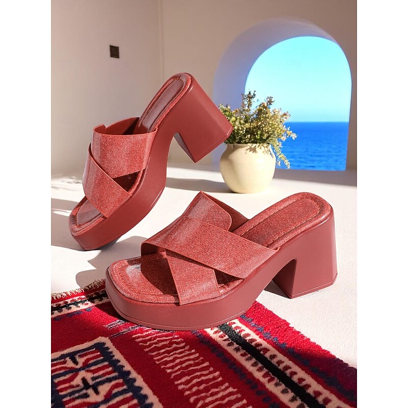 This Women's Red Crisscross Platform Slide Sandals – Chunky Heel Summer Shoes with Glitter Finish for Beach, Vacation, and Casual Wear combines elegant design with practical functionality. Every detail has been carefully considered to ensure you get the best possible experience. The high quality construction means this product will serve you well for years to come.