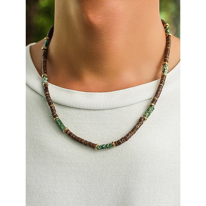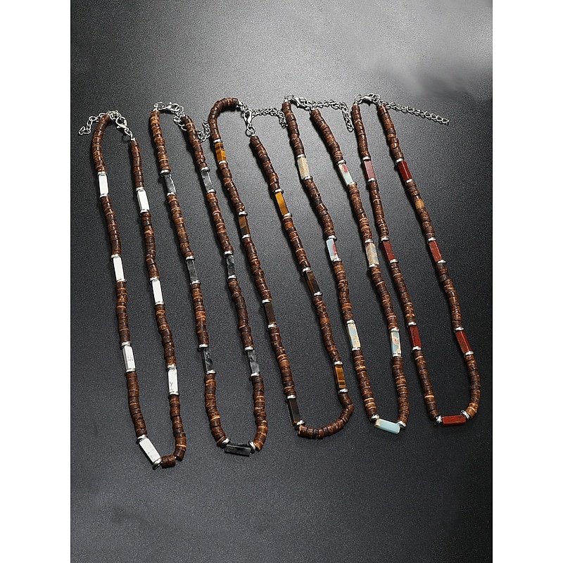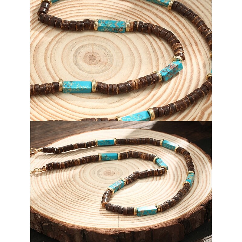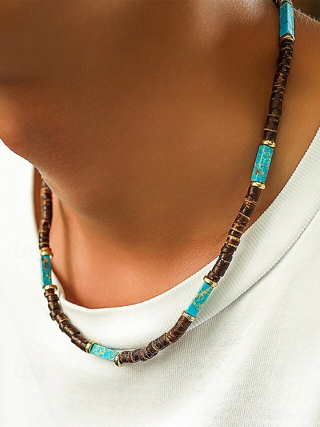 $9.99 - Men's Natural Wood Beaded Necklace with Turquoise Accents, Boho Surfer Style, Adjustable Jewelry for Beach, Festival and Casual Outfits 2025. Shop for cheap Men's Jewelry online? Buy at lightinthebox.com on sale today!