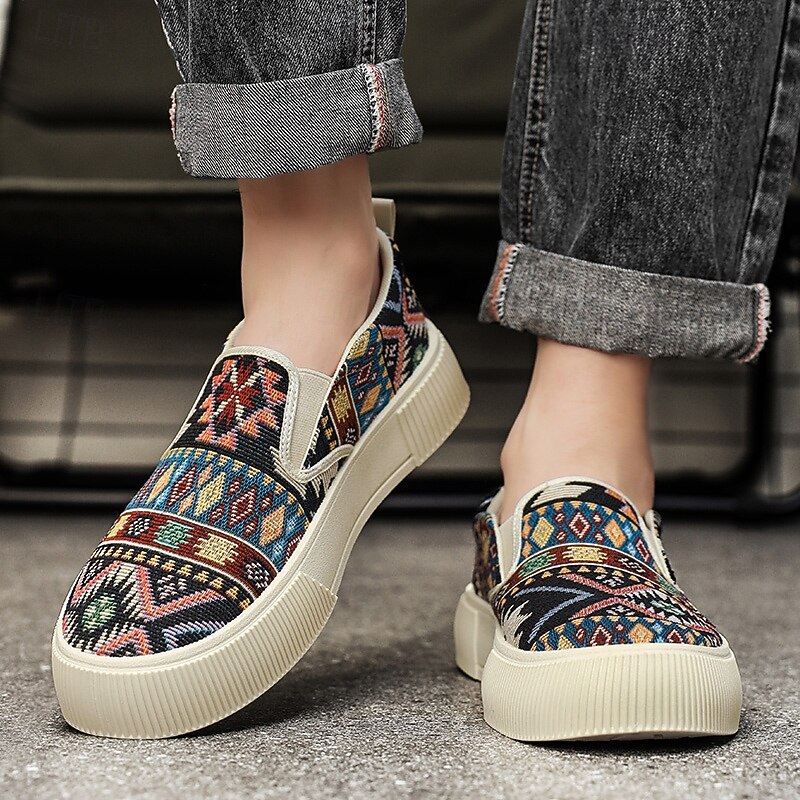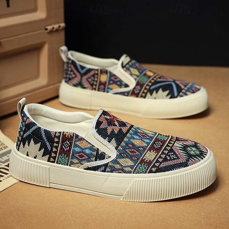 HOT ! Men's Southwest Native Pattern Canvas Slip-On Sneakers – Comfortable, Stylish Casual Shoes for Everyday Wear