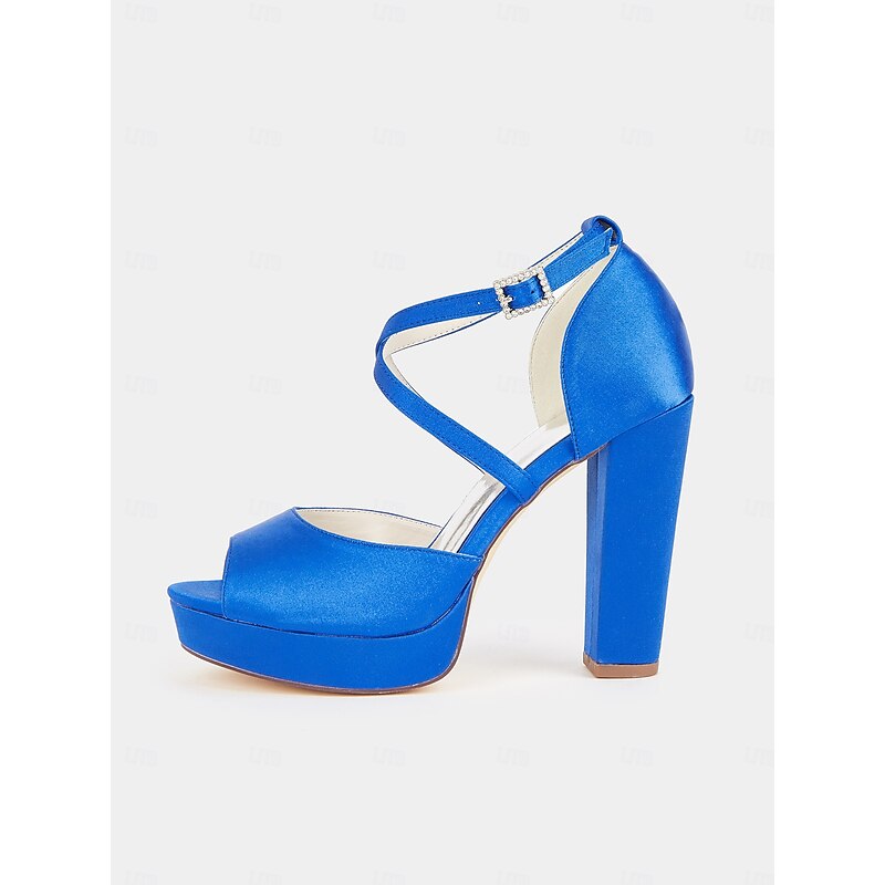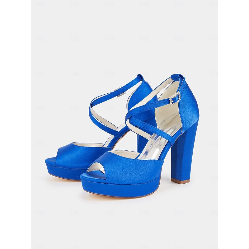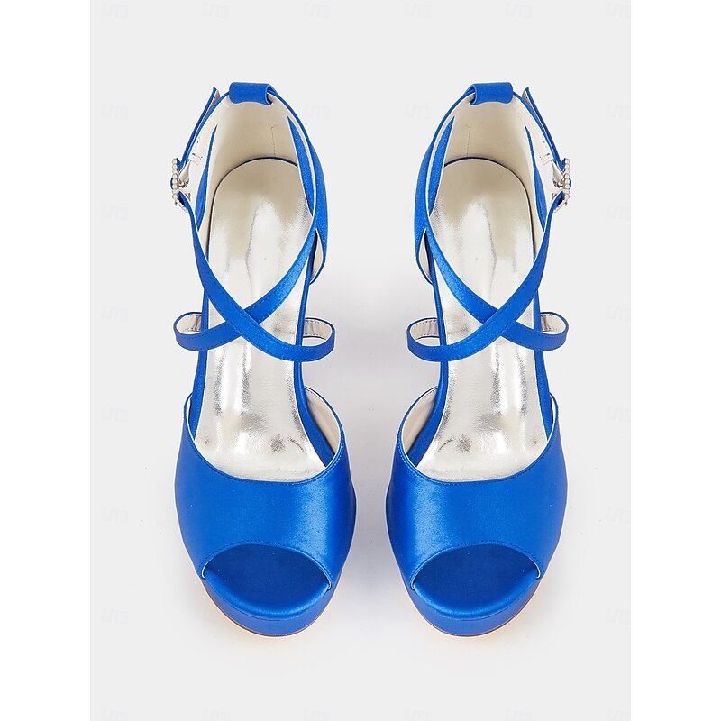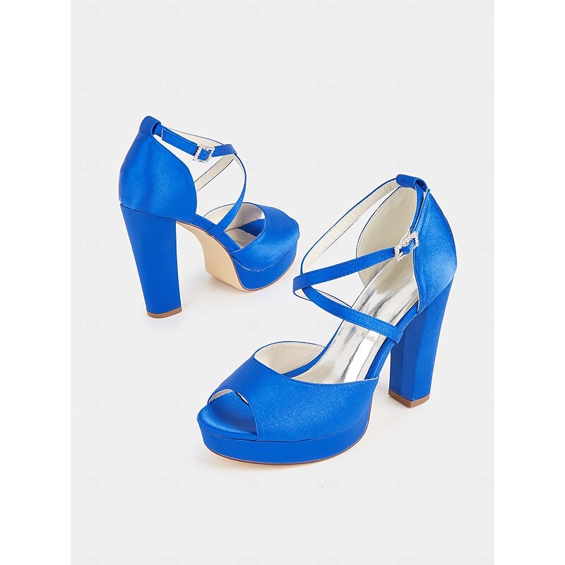Women's Satin Platform High Heel Sandals with Peep Toe and Ankle Strap – Elegant Bridal Shoes for Weddings and Formal Occasions 43