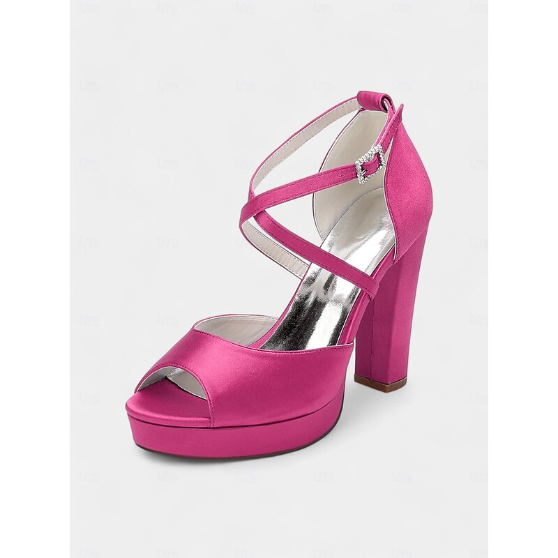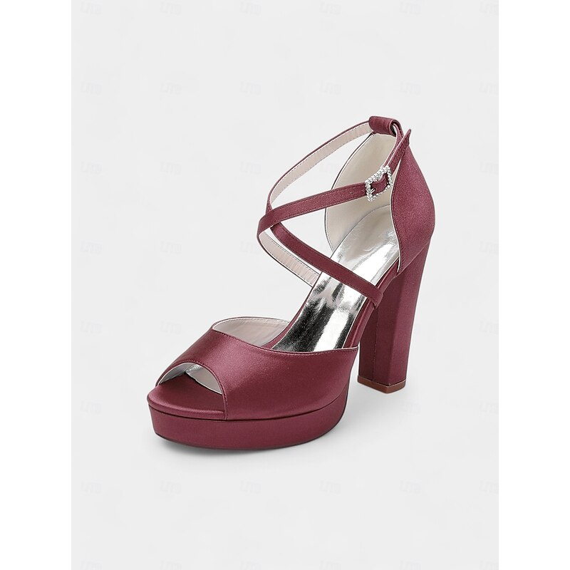 HOT ! Women's Satin Platform High Heel Sandals with Peep Toe and Ankle Strap – Elegant Bridal Shoes for Weddings and Formal Occasions