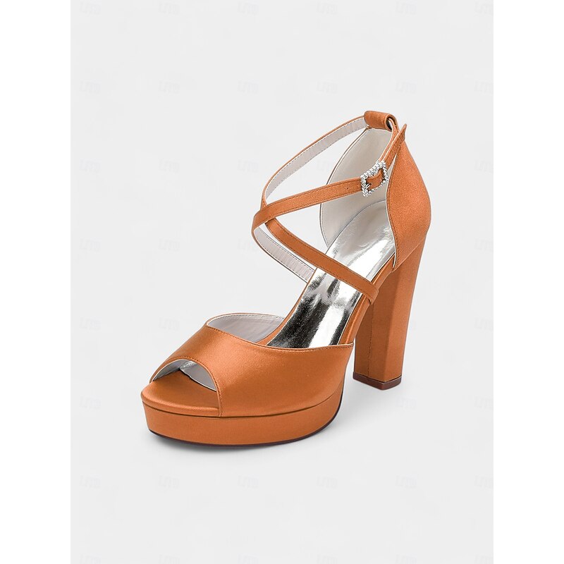 Women's Satin Platform High Heel Sandals with Peep Toe and Ankle Strap – Elegant Bridal Shoes for Weddings and Formal Occasions 42