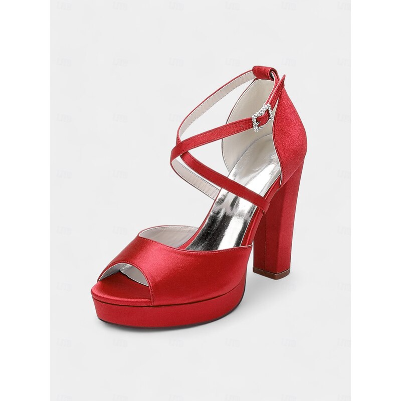 Women's Satin Platform High Heel Sandals with Peep Toe and Ankle Strap – Elegant Bridal Shoes for Weddings and Formal Occasions 41