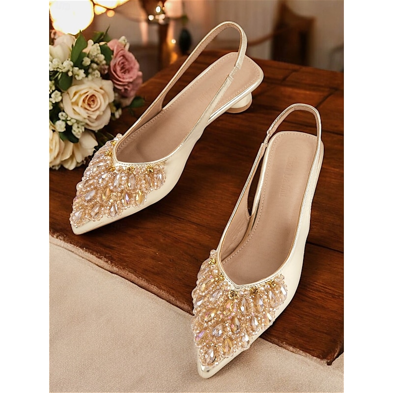 Why Choose Slingback Wedding Shoes with Beaded Detail for Women - Ivory Crystal-Embellished Flats for Bridal Occasions?