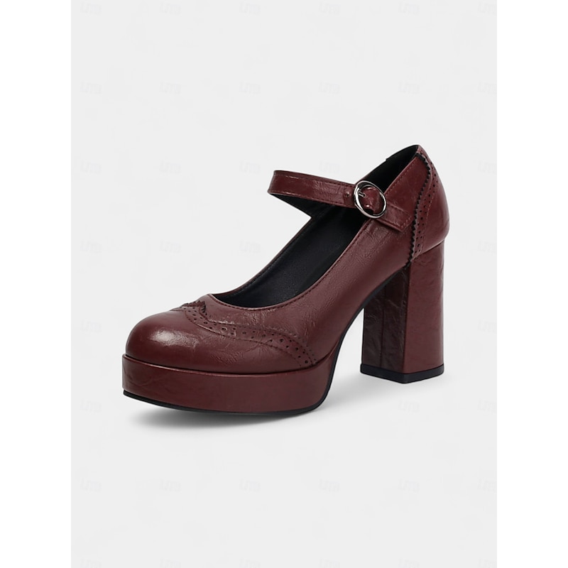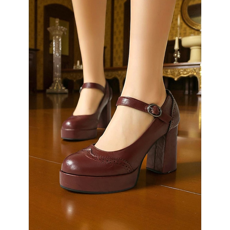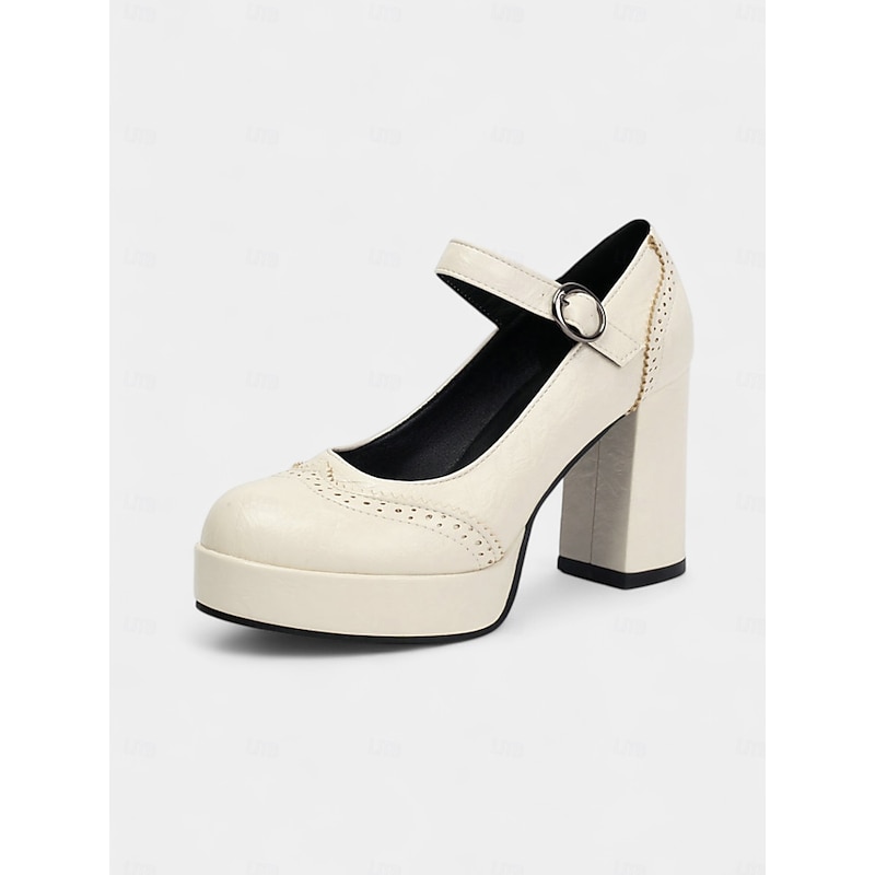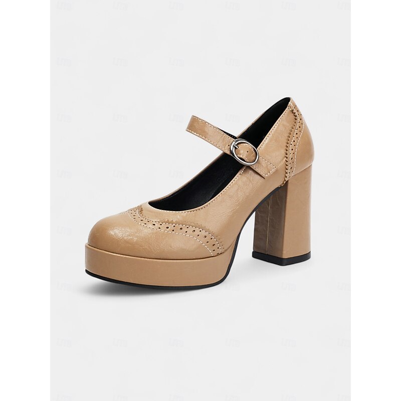 HOT ! Women's Apricot Mary Jane Platform Pumps - 1950s Retro Chunky Heel Shoes with Brogue Detailing and Adjustable Strap for Office, Tea Parties, and Daily Wear