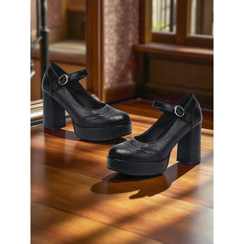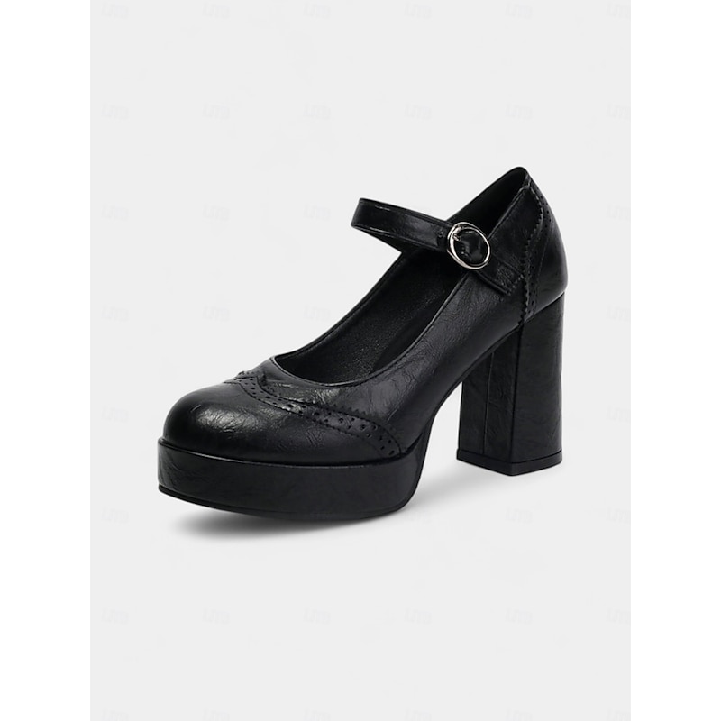 Highlights - Premium quality PU upper material - Luxurious synthetic leather lining - Stylish buckle embellishment - Sturdy block heel for added comfort - Classic round toe shape - Durable rubber outsole for long-lasting wear