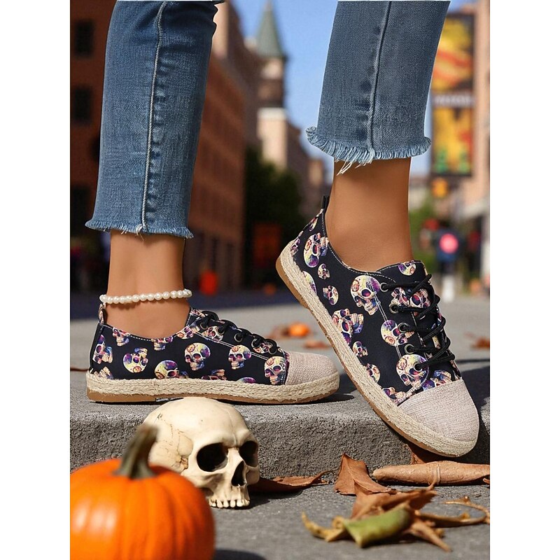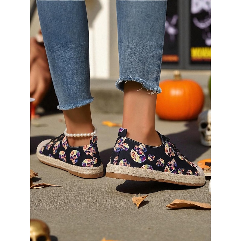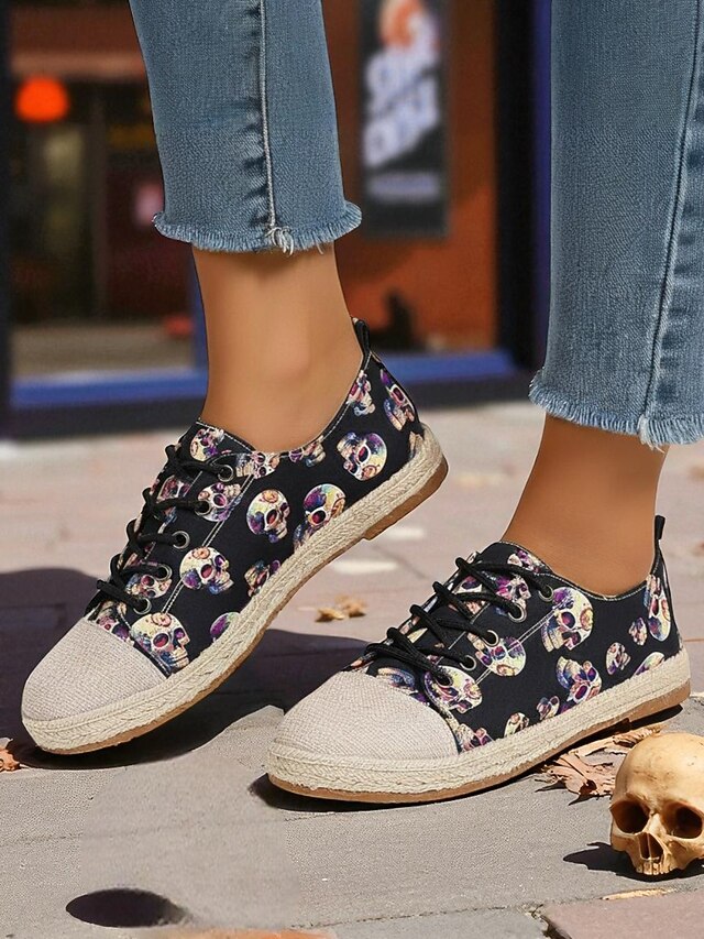 $26.99 - Women's Skull Pattern Canvas Espadrilles with Jute Sole - Lace-Up Halloween Sneakers for Gothic Style, Fall Outfits and Daily Comfort 2025. Shop for cheap Shoes For Women online? Buy at lightinthebox.com on sale today!
