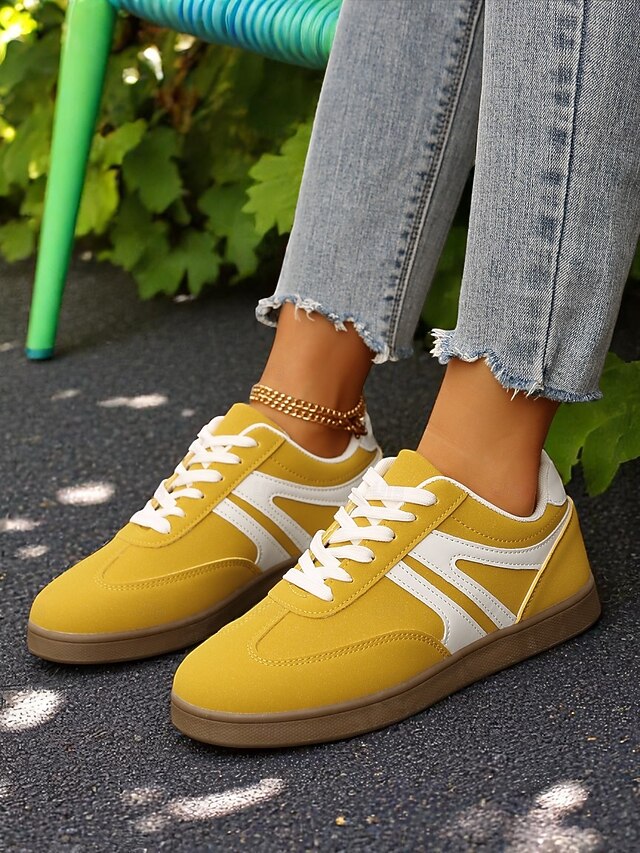 This Retro Yellow Low-Top Sneakers for Women - Vintage Lace-Up Casual Shoes, Comfortable Daily Wear for Street & Outdoor Style combines elegant design with practical functionality. Every detail has been carefully considered to ensure you get the best possible experience. The high quality construction means this product will serve you well for years to come.