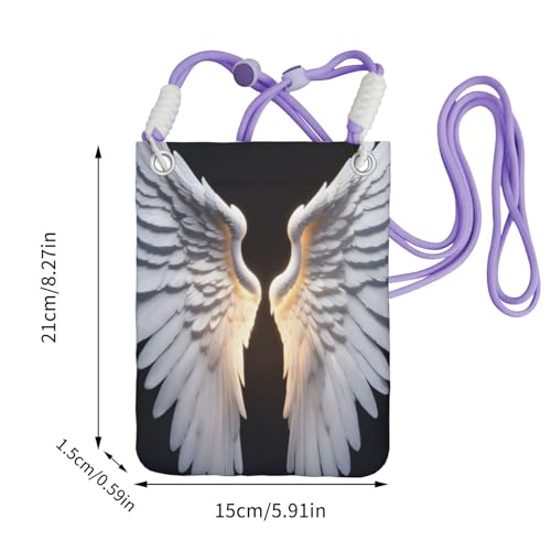 Closure type: BuckleShoulder Strap: The cell phone purse comes with 1 adjustable & detachable shoulder straps. You can use it as a crossbody bag, phone shoulder purse, lanyard for phone, wallet, Zero wallet.Structural design: This Angel Wing Print crossbody purse features a spacious main pocket,You Easy To Put Your Small Items Like Keys, Lipsticks, Cellphone, Cash, Headset, Card And Napkin Napkin Paper For Daily Use.Texture of material: This stylish and avant garde phone bag is made of polyester twill fabric, integrating durability and elegance. Equipped with detachable shoulder straps, it is both fashionable and practical.Various Occasions: This cross body bag is perfect for work, travel, going out, shopping, parties, etc. This is a fantastic gift choice for your wife, daughter, girlfriend, and friendsDimensions: H 8.27 x L 5.9 x W 0.59 (21 x 15 x 1.5cm), cute little purse,Fits most big screen smartphone, please note the size.If you go out without a lot of things ,it's a good choice for you. Perfect for everyday use. High quality materials and excellent craftsmanship ensure long-lasting durability.
