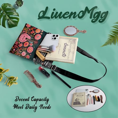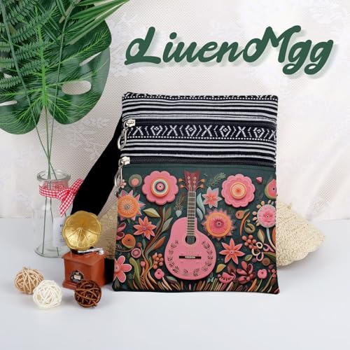 Floral Pink Guitar Messenger Bag Small Ethnic Pattern Printed Adjustable Strap Crossbody Zipper Bag Floral Pink Guitar Phone Bag Wallet Cute Shoulder Handbag for Women
