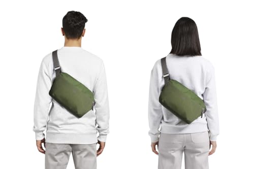 An expansion gusset lets this sling grow to fit an extra jacket (or a couple of bottles of wine), and then self compress when the load is lighter. There’s plenty of organization, including a quick-access front pocket with key clip, internal soft-lined pouch, slip pockets, pop pockets and mesh zip pockets.The zipper opens from both ends, creating an ultra wide opening that lets you see and grab everything, without rummaging. And the comfortable, adjustable shoulder strap can be detached from either end, for easy access no matter how you wear the sling.This sling is made with durable, water-resistant ripstop nylon, made from 100% recycled industrial nylon offcuts.Sling measures 9.4 inches x 14.2 inches x 3.9 inches / 240mm x 360mm x 100mm; strap measures minimum 36 inches / 92cm and maximum 62 inches / 150cmMale model is 6’1” / 185cm; female model is 5’6” / 168cm Perfect for everyday use. High quality materials and excellent craftsmanship ensure long-lasting durability.