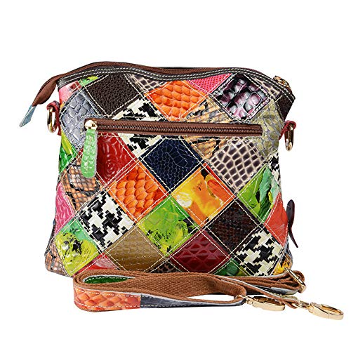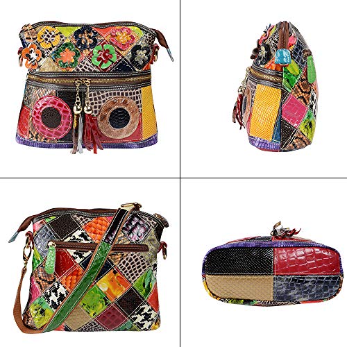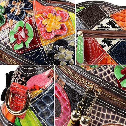 Segater® Women’s Multicolor Floral Crossbody Bag Cowhide Leather Handbag Colorful Purses Vintage Snake Pattern Shoulder Bag