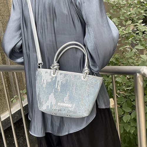 HOT ! Sequin Purse Sparkly Denim Sequin Purse Mini Bucket Bag Shoulder Bags Zipper Trendy Gifts for Women Girls