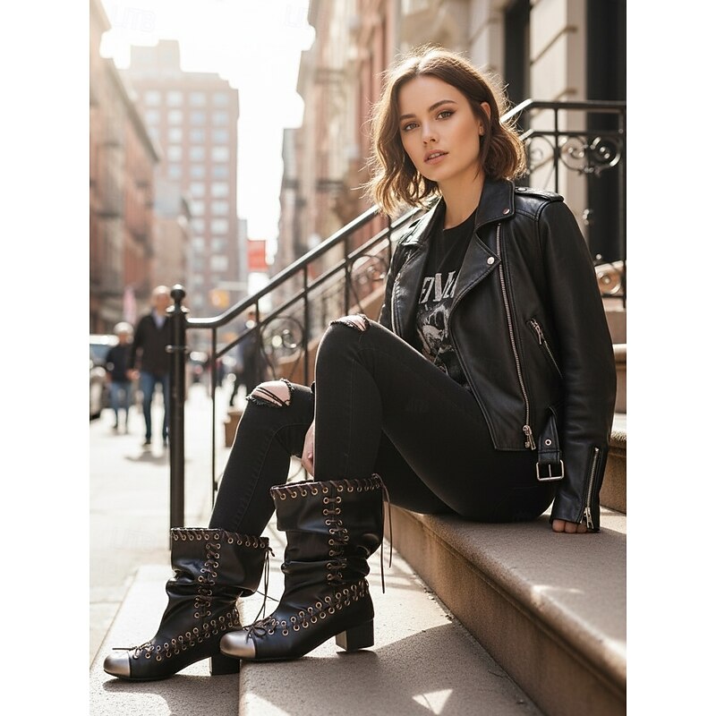 Why Choose Women's Leather Slouchy Boots with Lace - Up Detailing, Steampunk - Inspired Style for Urban Fashion Outfits, Ideal for Trendy City Looks and Daily Wear?