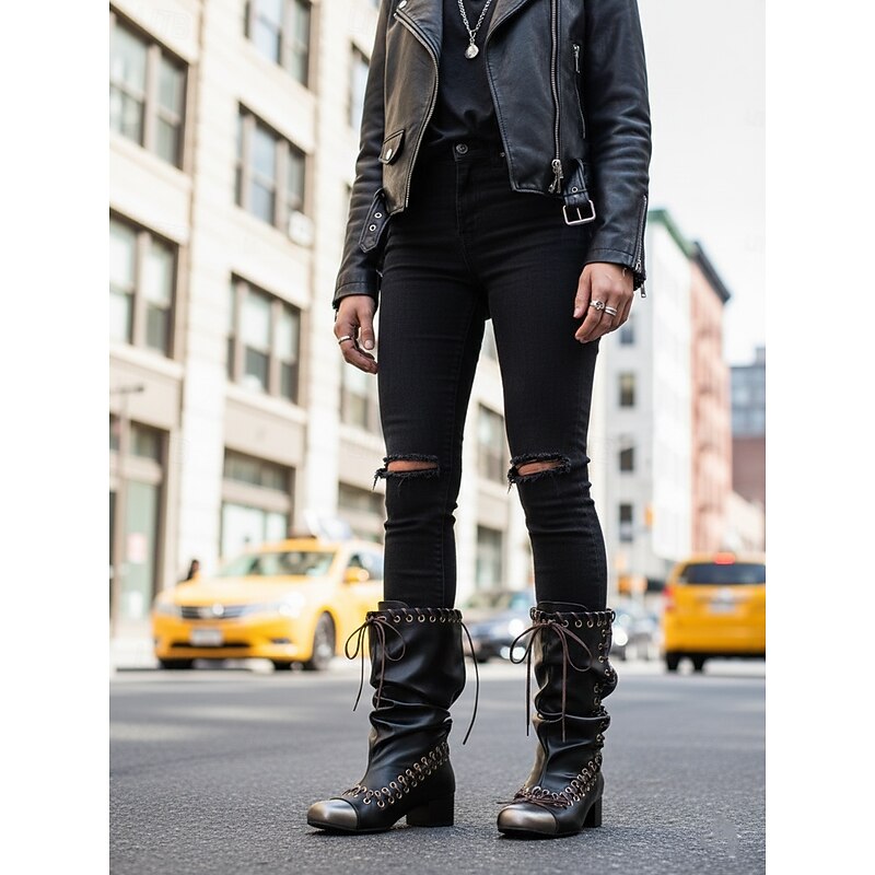 This Women's Leather Slouchy Boots with Lace - Up Detailing, Steampunk - Inspired Style for Urban Fashion Outfits, Ideal for Trendy City Looks and Daily Wear combines elegant design with practical functionality. Every detail has been carefully considered to ensure you get the best possible experience. The high quality construction means this product will serve you well for years to come.