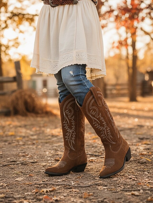 Why Choose Women's Brown Cowboy Boots with Embroidered Western Stitching, Pointed Toe and Low Block Heel - Stylish Urban Casual Footwear for Women's Streetwear and Everyday Outfits?
