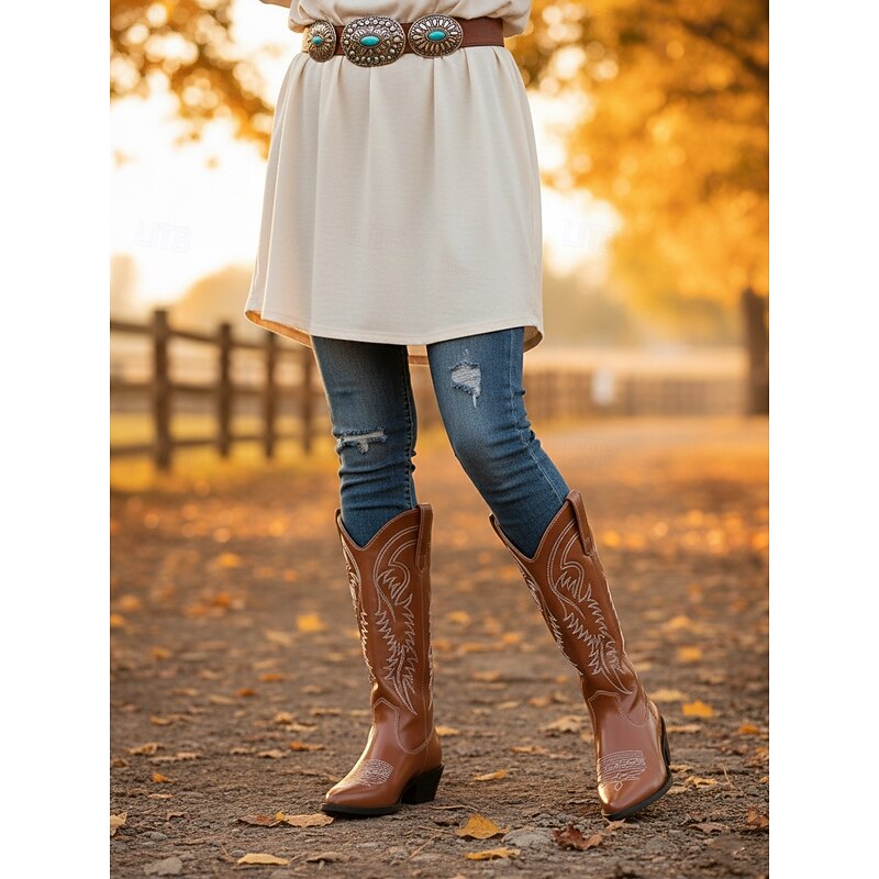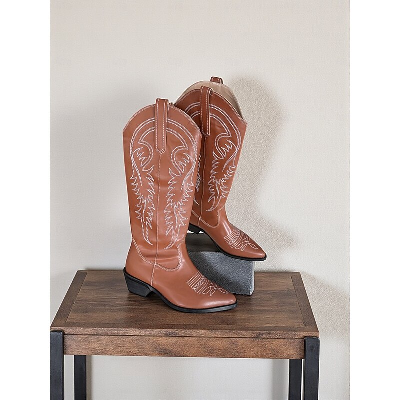This Women's Brown Cowboy Boots with Embroidered Western Stitching, Pointed Toe and Low Block Heel - Stylish Urban Casual Footwear for Women's Streetwear and Everyday Outfits combines elegant design with practical functionality. Every detail has been carefully considered to ensure you get the best possible experience. The high quality construction means this product will serve you well for years to come.