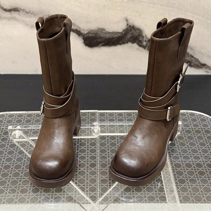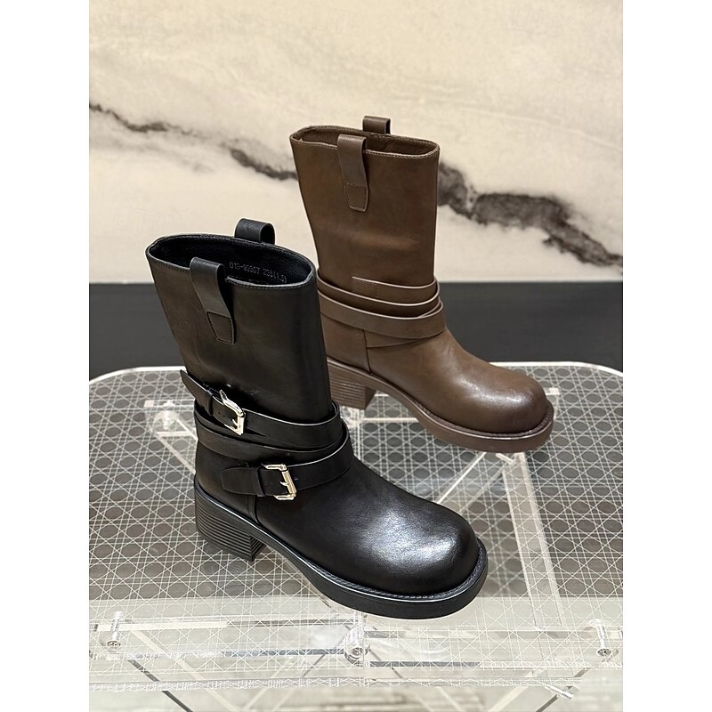 Highlights 1. Premium faux leather creates a luxurious upper material. 2. Stylish block heel for added stability and height. 3. Classic round toe shape for timeless appeal. 4. Durable rubber outsole for long-lasting wear.
