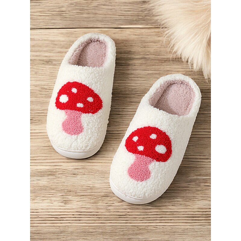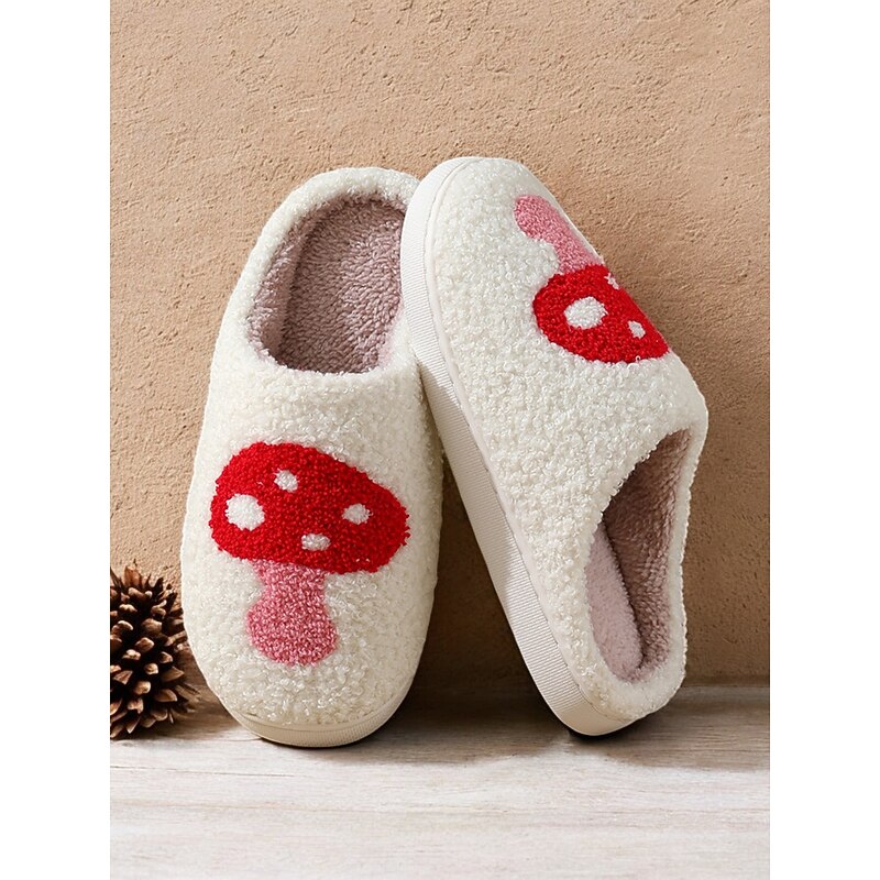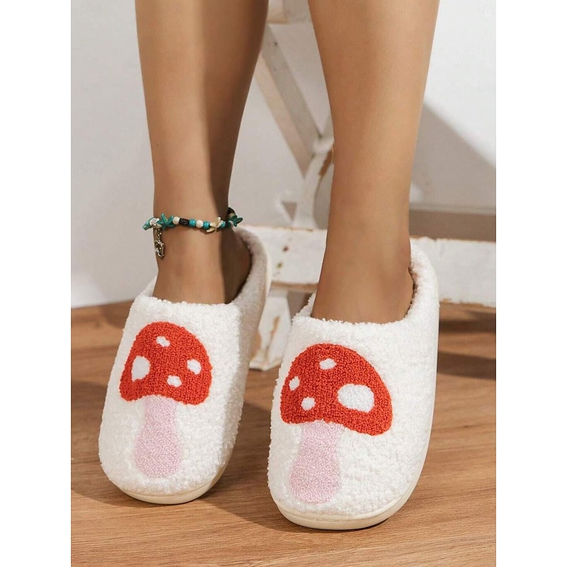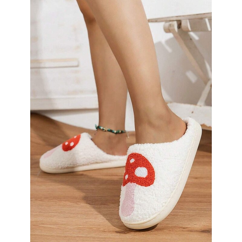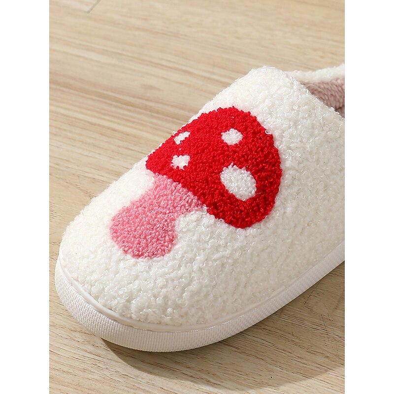 : These slippers boast a playful red mushroom embroidery on the upper surface, adding a touch of whimsical charm. The black exterior is elegantly accented by vibrant red and white details, creating a visually appealing contrast that stands out in any loungewear collection.
