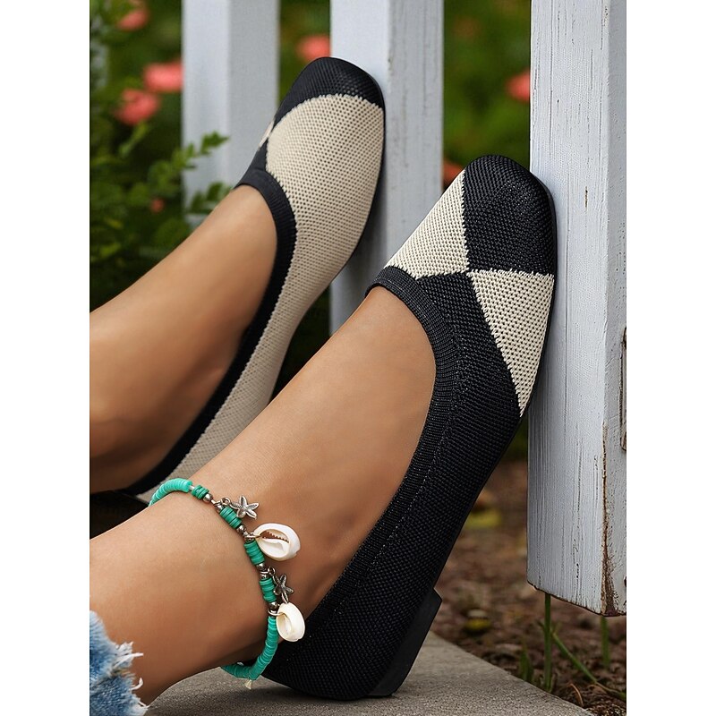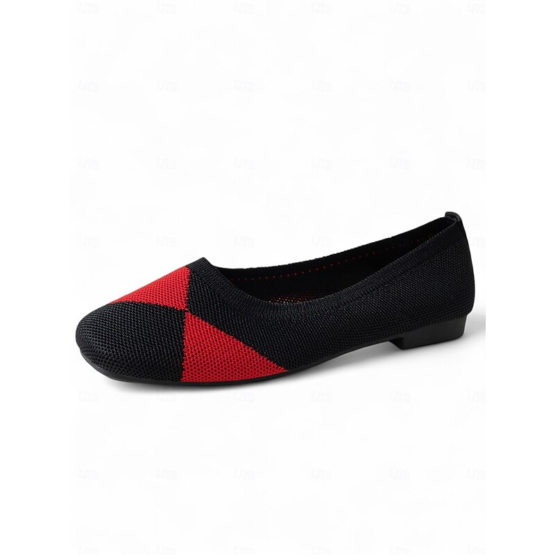 Why Choose Women's Red and Black Square Toe Knit Flats – Retro Colorblock Shoes for Fall Festivals, Shopping & Casual Workwear?