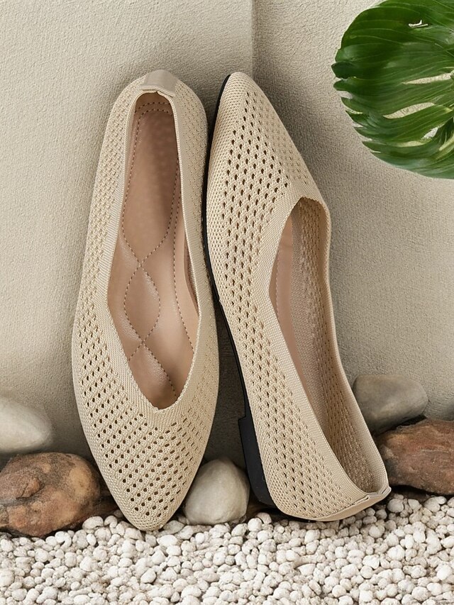 HOT ! Women's Beige Slip-On Fly-knit Flats with Breathable Mesh Design, Lightweight Sole, and Comfortable Fit for Casual Summer Wear and Daily Outfits