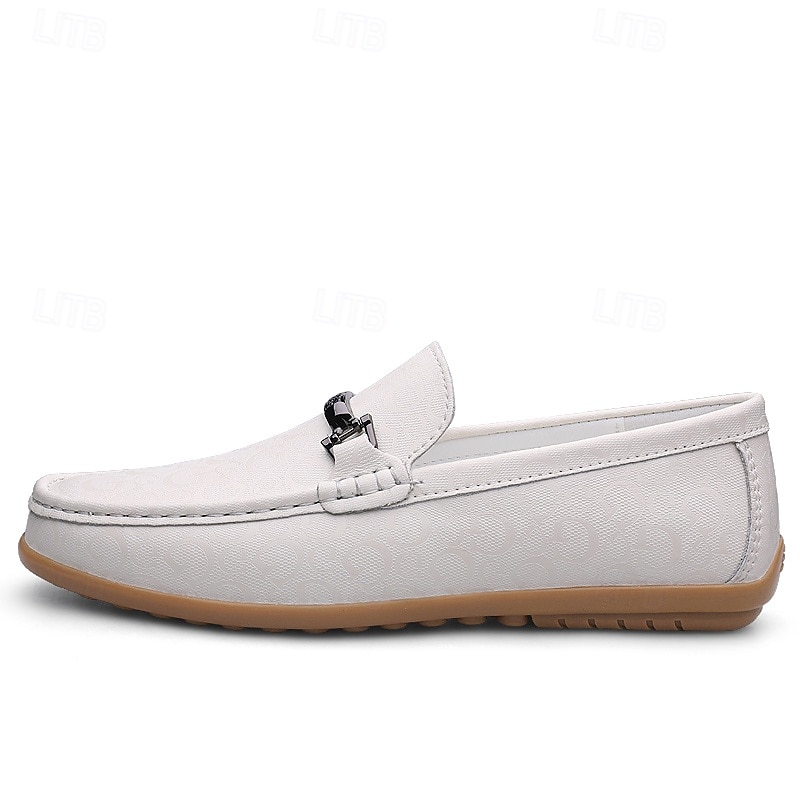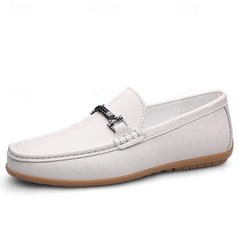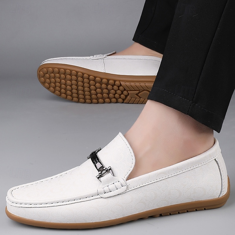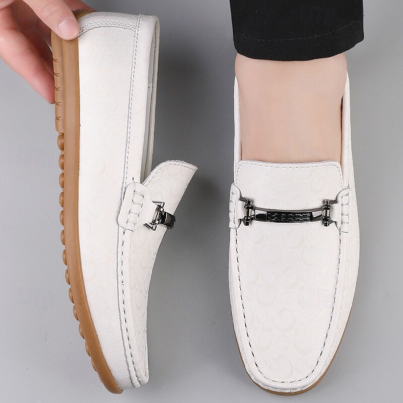 HOT ! Men's White Loafers with Silver Accents, Lightweight Casual Shoes, Ideal for Everyday Wear and Vacation Getaways