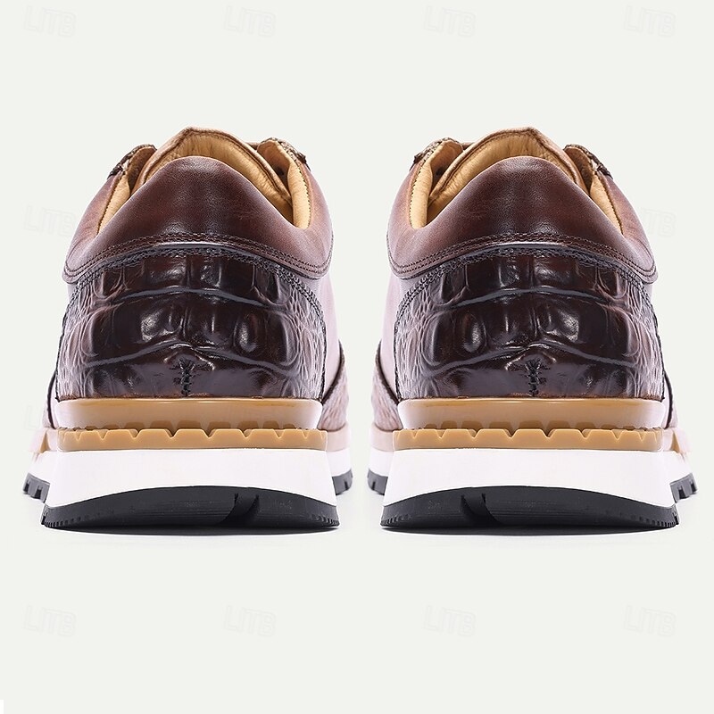 More information about Men's Tan Genuine Leather Crocodile Pattern Sneakers with Lace-Up Closure and Flexible Sole, Luxury Casual Dress Shoes for Parties and Business Casual Outfits