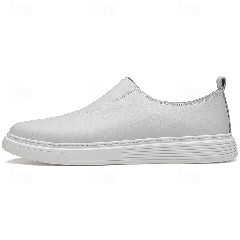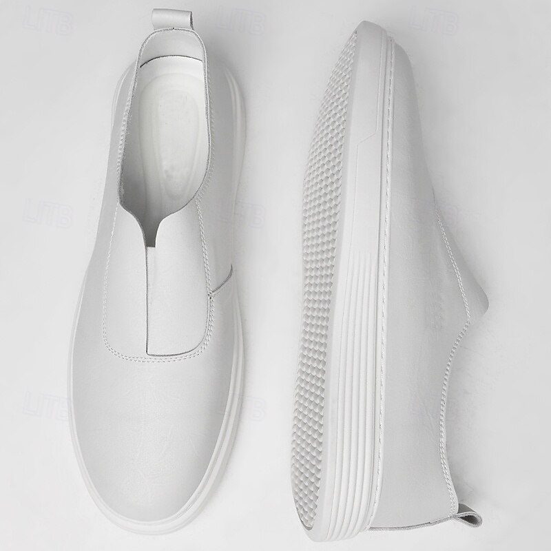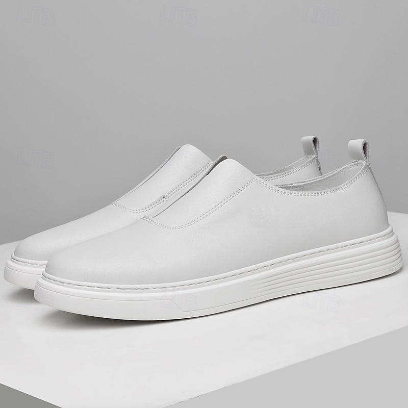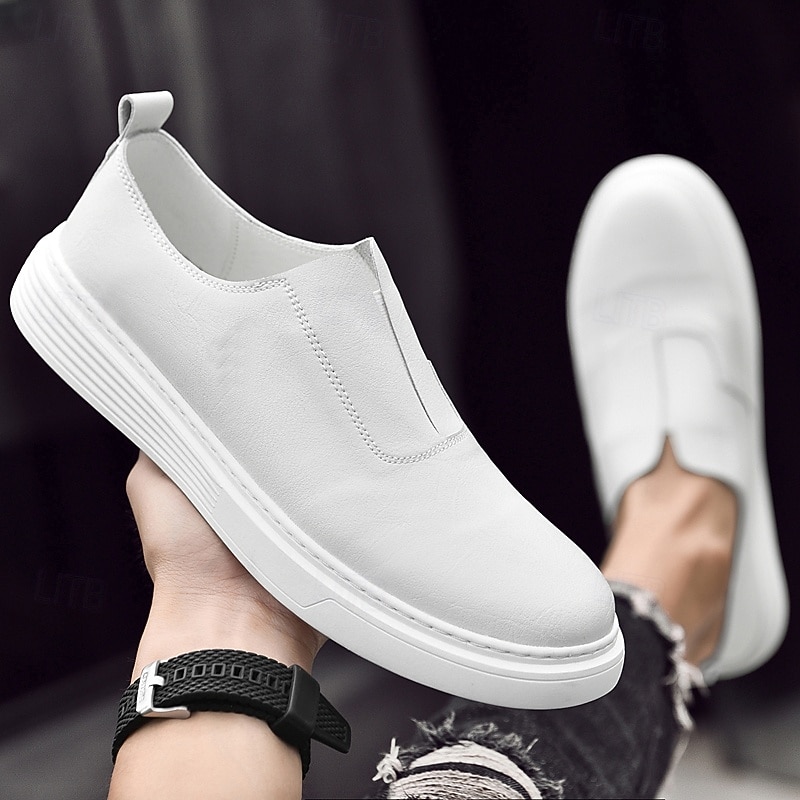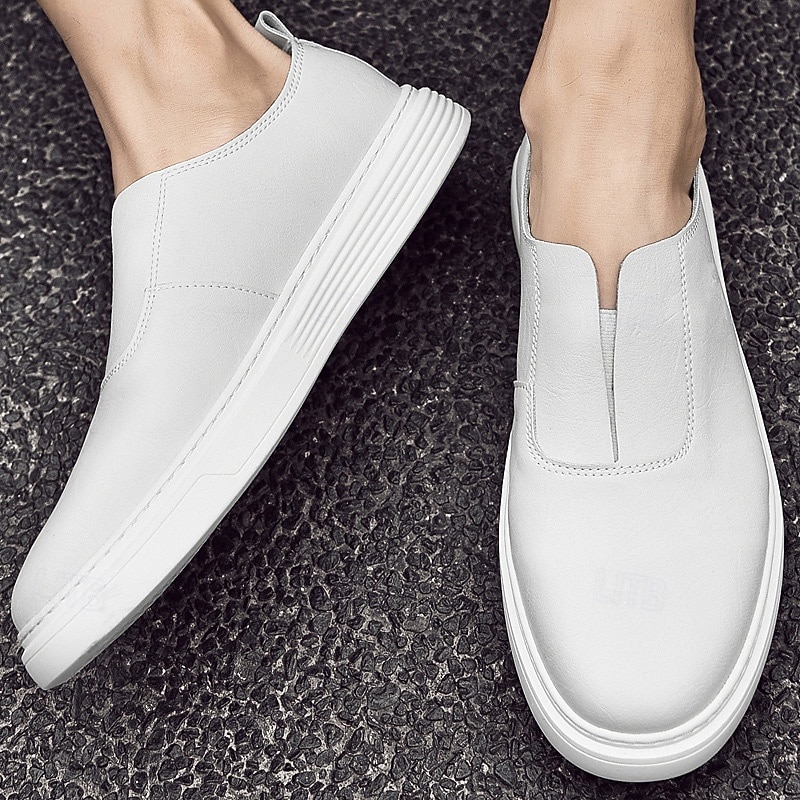Why Choose Men's White Slip - on Leather Shoes - Minimalist & Comfortable, Suitable for Busy Professionals in Office & Casual Settings?