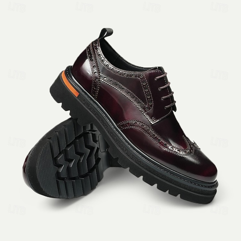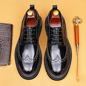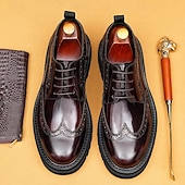 More information about Men's Genuine Leather Wingtip Brogue Dress Shoes Lace-Up Classic Brown Formal Footwear for Office, Banquets and Weddings
