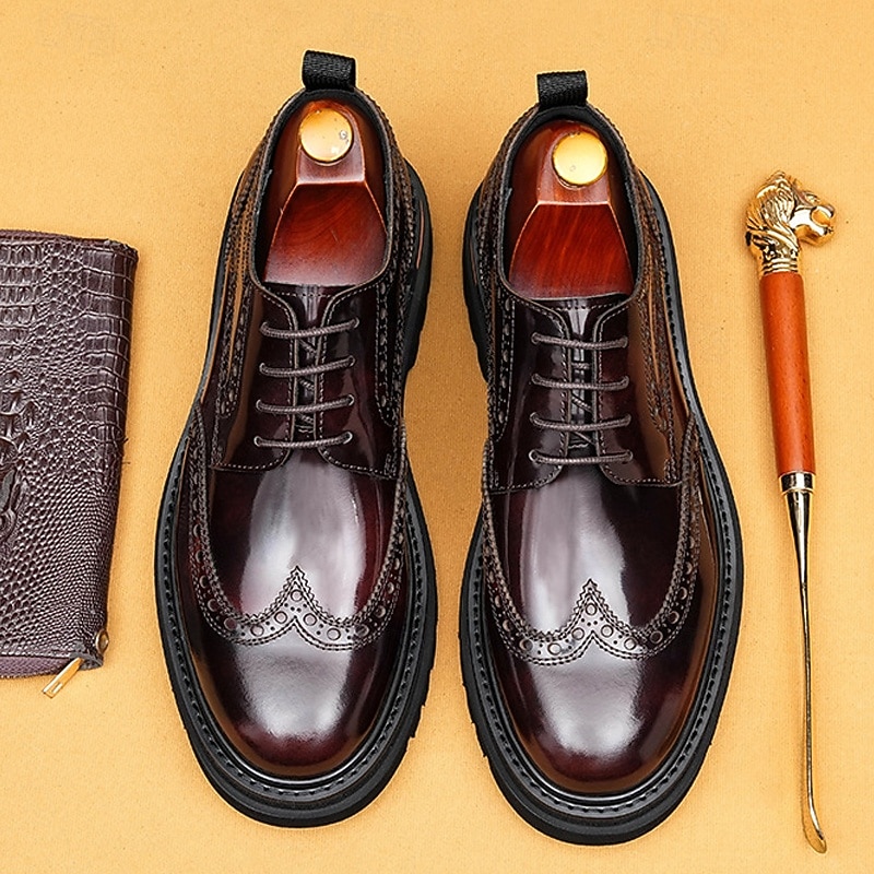 Men's Genuine Leather Wingtip Brogue Dress Shoes Lace-Up Classic Brown Formal Footwear for Office, Banquets and Weddings 1