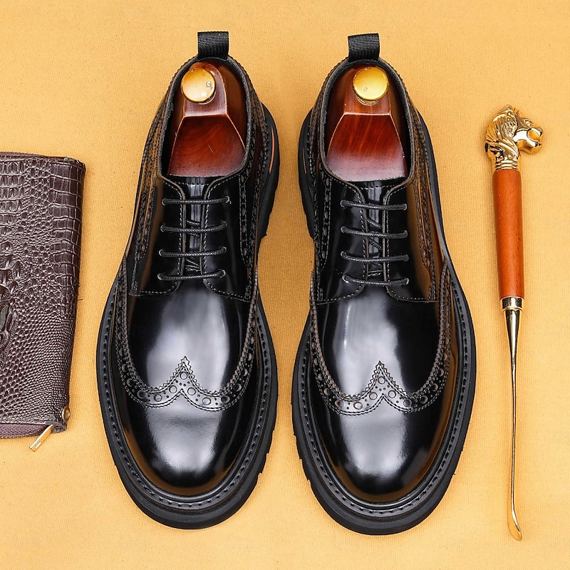 Men's Genuine Leather Wingtip Brogue Dress Shoes Lace-Up Classic Brown Formal Footwear for Office, Banquets and Weddings 20
