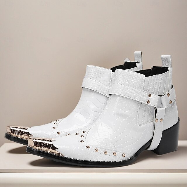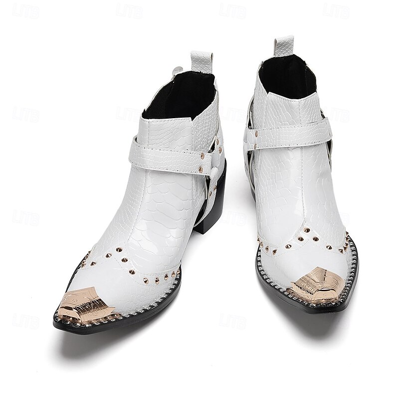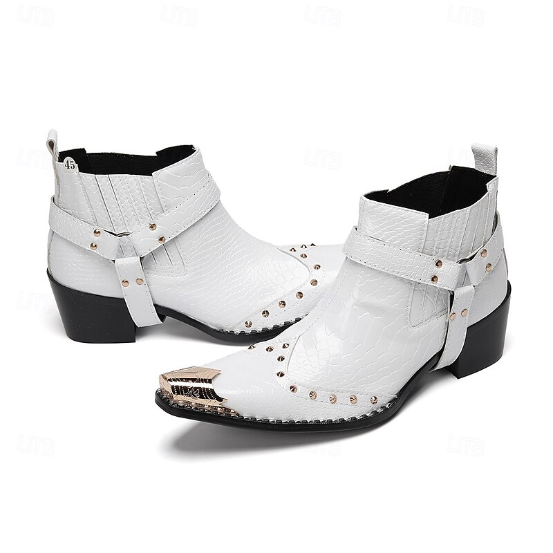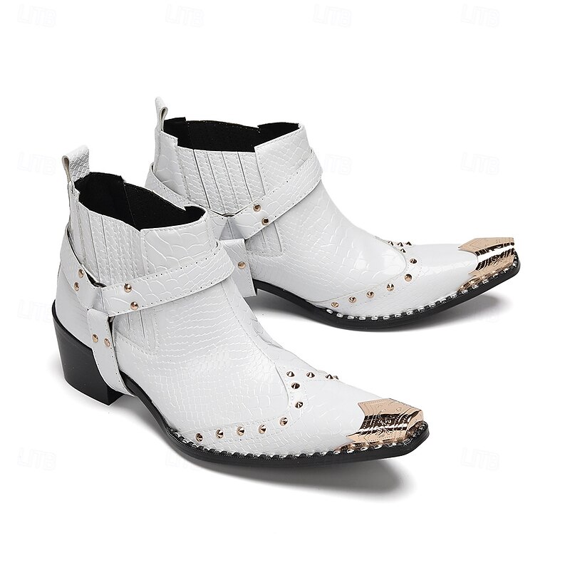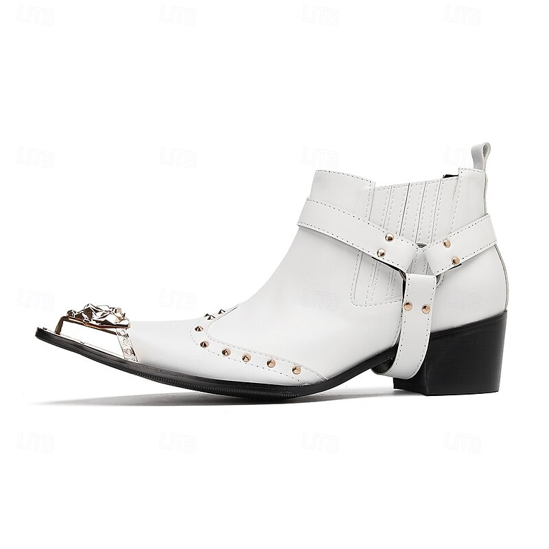 Why Choose White Genuine Leather Men's Western Motorcycle Boots with Metal Toe Cap, Studded Strap, Punk Gothic Style – Ideal for Harley Riders, Rock Concerts, Stage Performance and Nightlife Fashion?