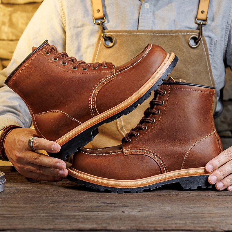 Men's  Brown Work Boots with Lace-Up Design and Contrasting Sole, Durable Outdoor Footwear for Casual Wear, Work and Weekend Outings 6