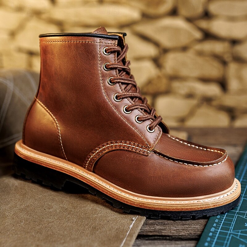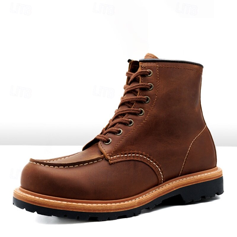 HOT ! Men's Brown Work Boots with Lace-Up Design and Contrasting Sole, Durable Outdoor Footwear for Casual Wear, Work and Weekend Outings