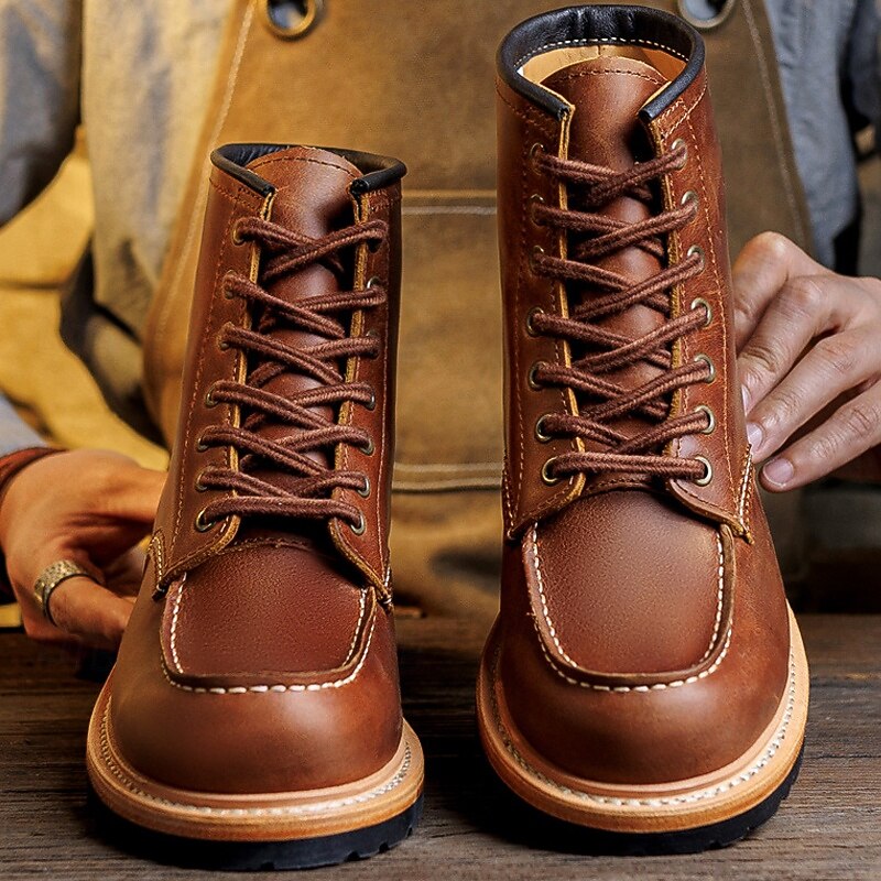 Men's  Brown Work Boots with Lace-Up Design and Contrasting Sole, Durable Outdoor Footwear for Casual Wear, Work and Weekend Outings 7