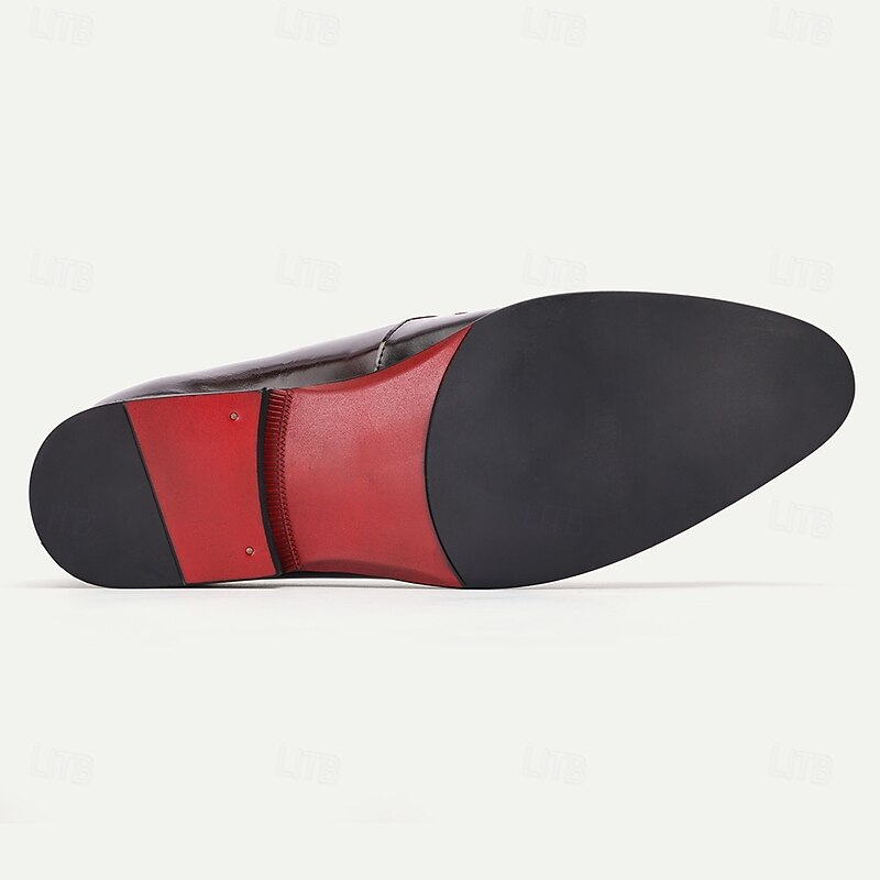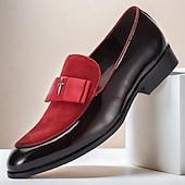 Highlights [Fabric] Meticulously crafted from premium Italian full-grain cowhide leather, these men's loafers offer a luxurious texture and a sleek, polished look. The interior is lined with high-quality leather, ensuring comfort with every step. [Design Highlights] The loafers feature a striking black leather base with an eye-catching red suede accent. A sophisticated bow and metallic embellishment on the upper add a flair of elegance and style. The classic round toe and slip-on style make these shoes a quintessential choice for any fashion-forward wardrobe. [Occasions] Perfect for formal events, business meetings, or upscale gatherings, these loafers make a refined statement. Whether you're attending a wedding or a high-profile dinner, these shoes provide a blend of comfort and upscale elegance. [Style Profile] Boasting a timeless loafer design, these shoes deliver both fashion and function. The sturdy rubber outsole offers maximum slip resistance and durability, making them ideal for extended wear. [Size Range] Available in a variety of sizes from US6/EU39/UK5 to US13/EU46/UK12, ensuring the perfect fit for every gentleman seeking style and elegance in their formal footwear.