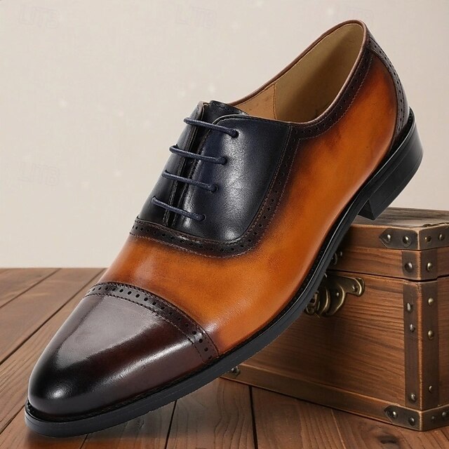 HOT ! Men’s Two-Tone Genuine Leather Oxford Shoes – Classic Cap Toe Lace-up Style for Professionals, Office Wear and Formal Events
